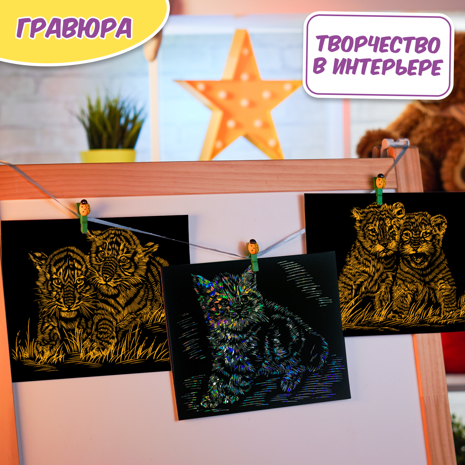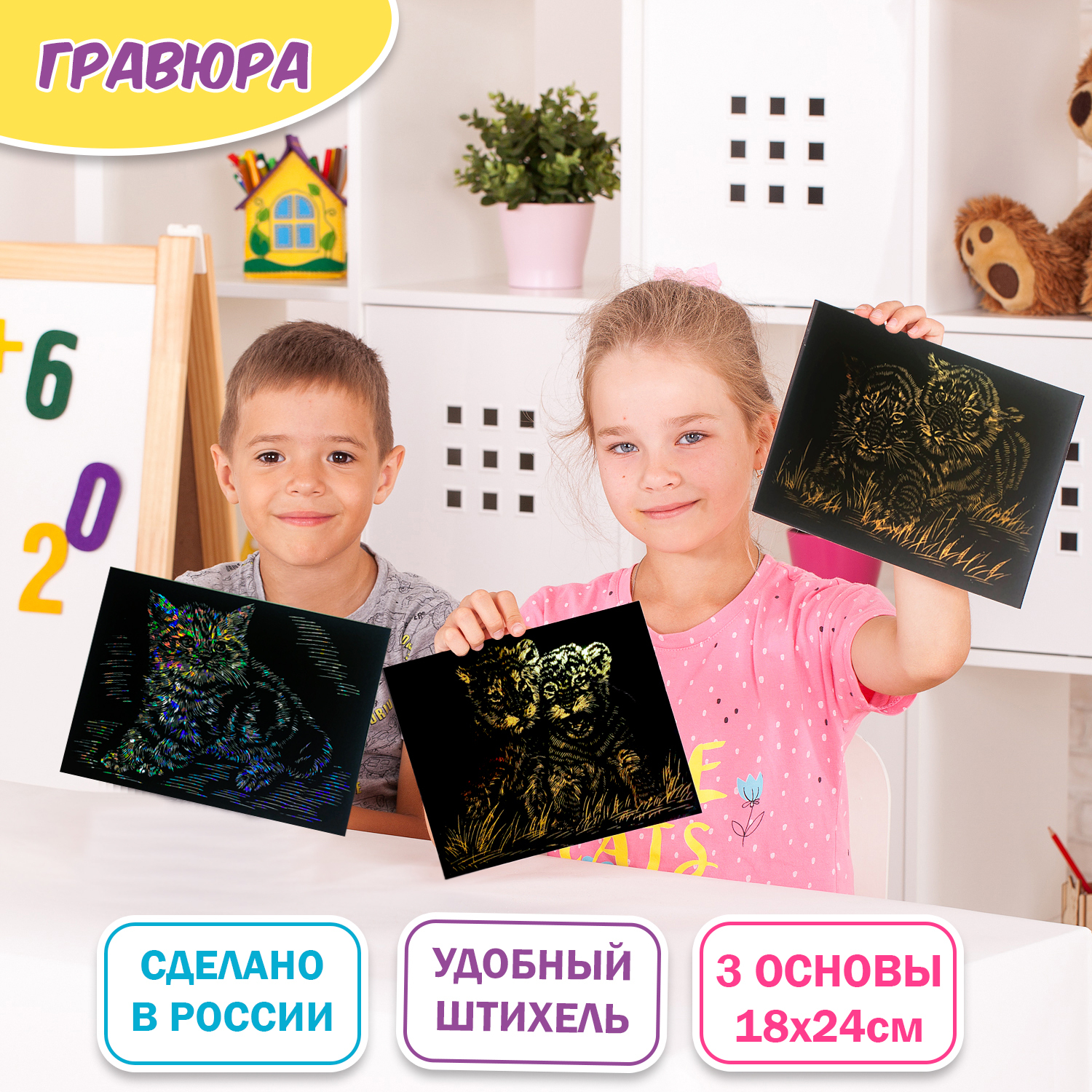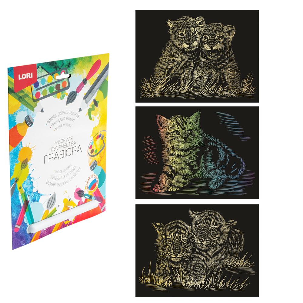 Набор для создания гравюр LORI Маленькие хищники 18х24 см, 3 шт в наборе