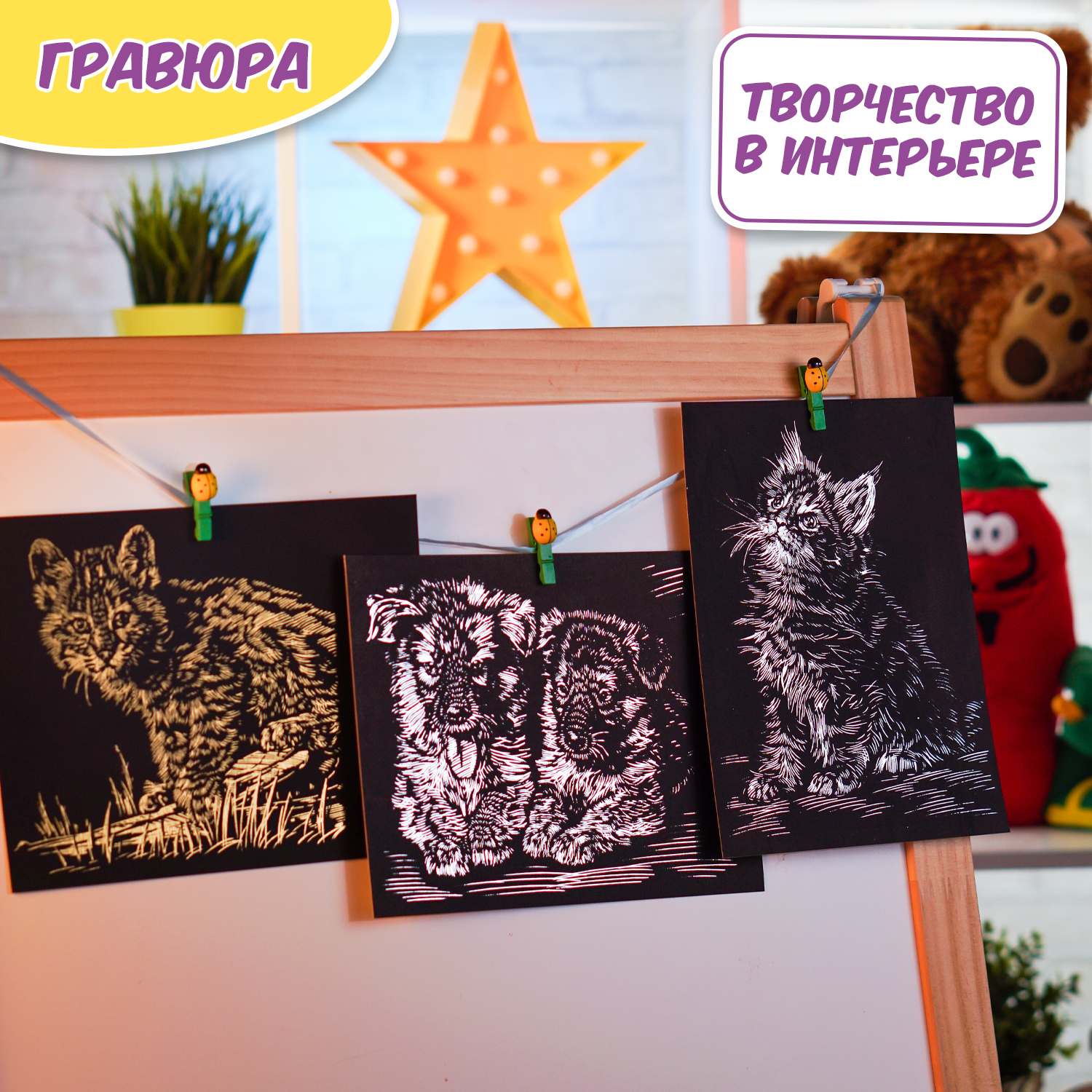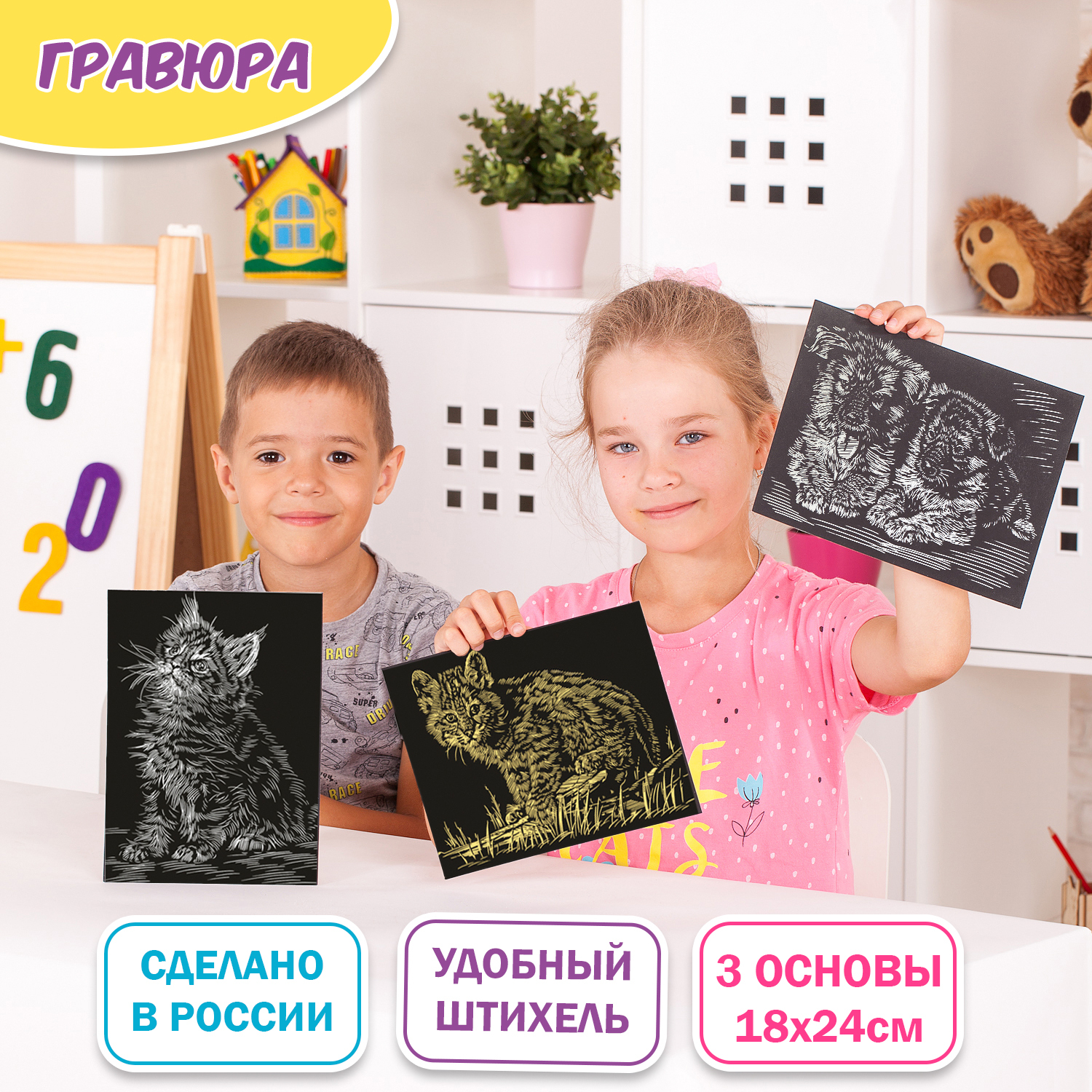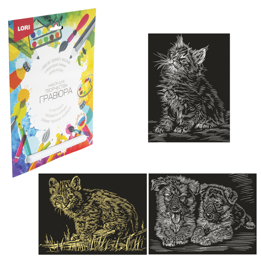 Набор для создания гравюр LORI Little ANIMALS, 18х24 см, 3 шт в наборе