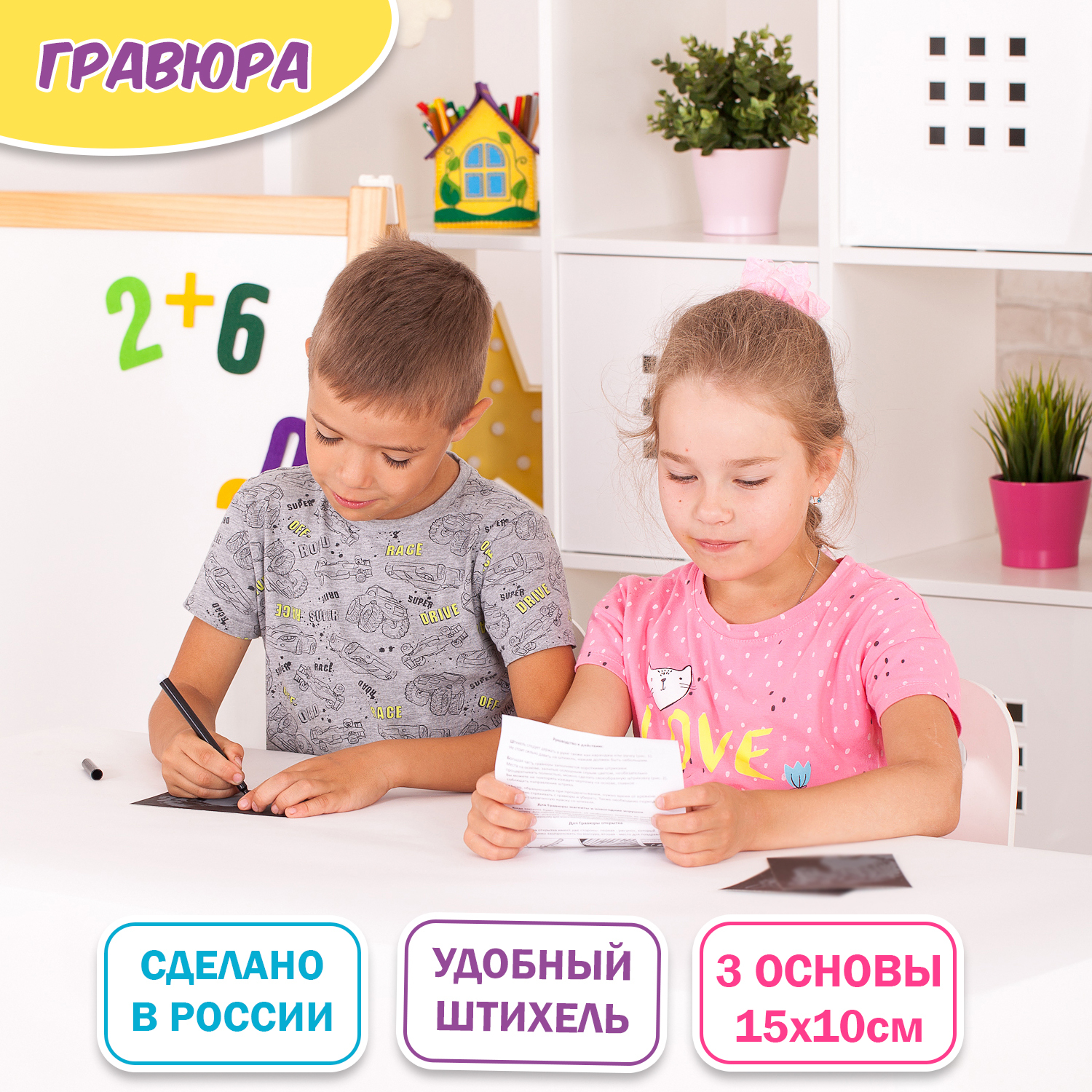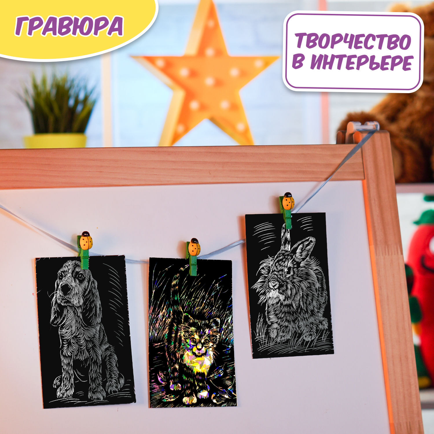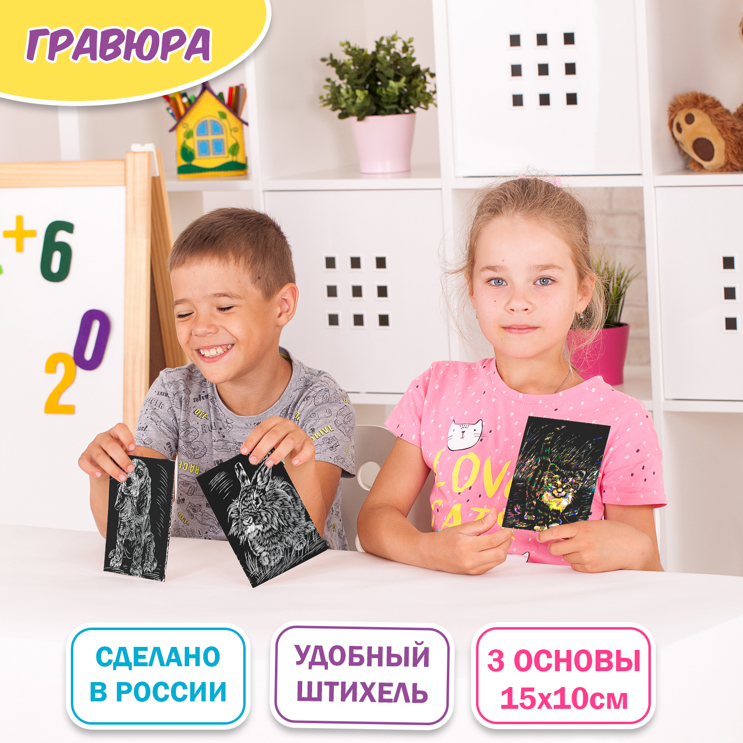 Набор для творчества LORI 2 картины из песка и 2 гравюры Мультяшные зверята, 4 шт. в наборе
