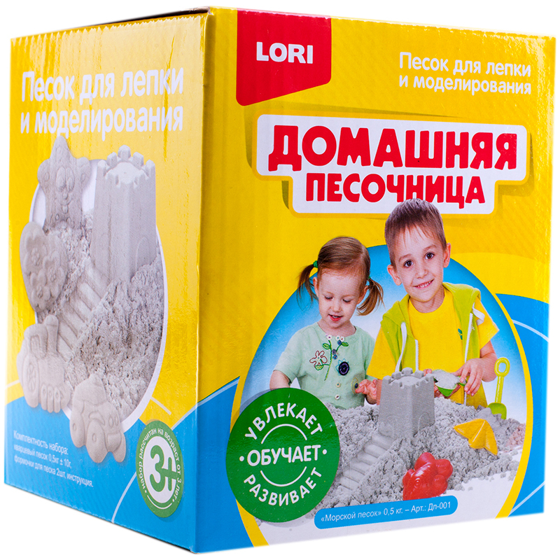 Песок для лепки Lori "Домашняя песочница", морской, 500г, 2 формочки