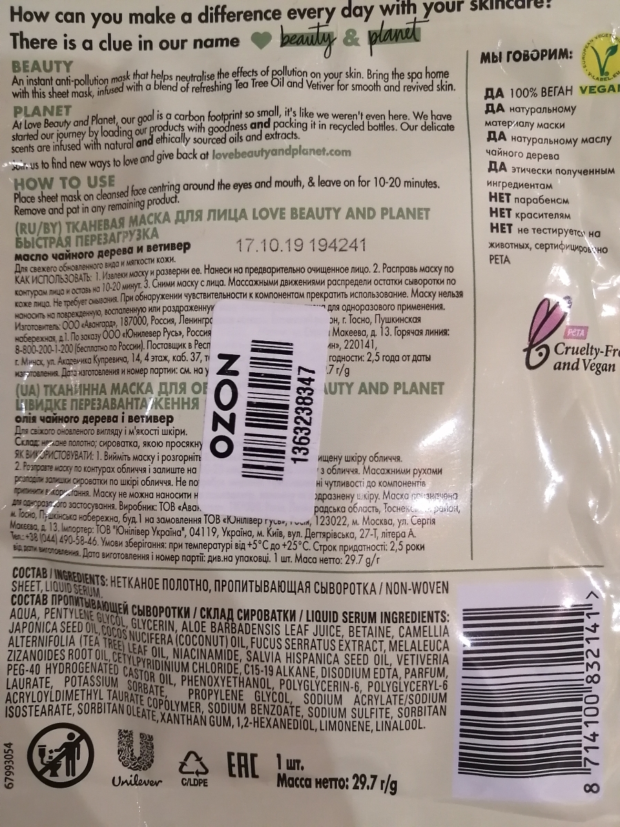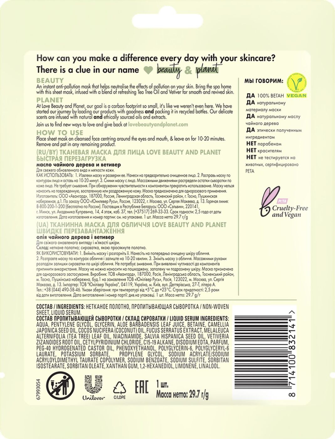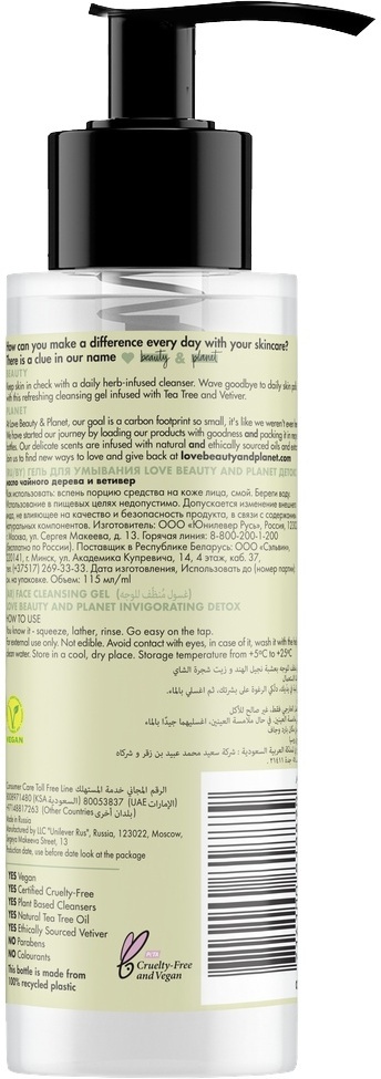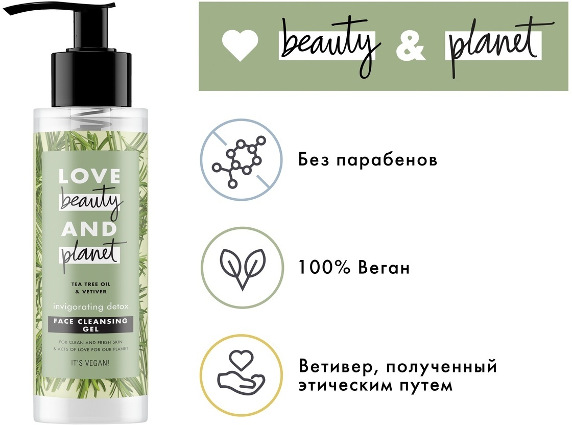 Гель для умывания Love Beauty&Planet "Детокс", с маслом чайного дерева и ветивером, 115 мл
