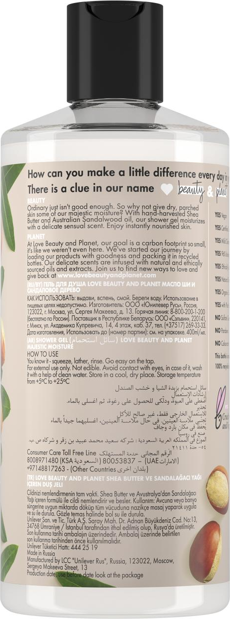 Гель для душа Love Beauty&Planet Масло ши и сандаловое дерево, 400 мл