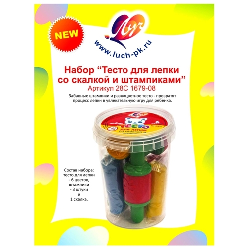 Масса для лепки Луч Кроха Тесто для лепки со скалкой и штампиками 6 цветов (28С1679-08)