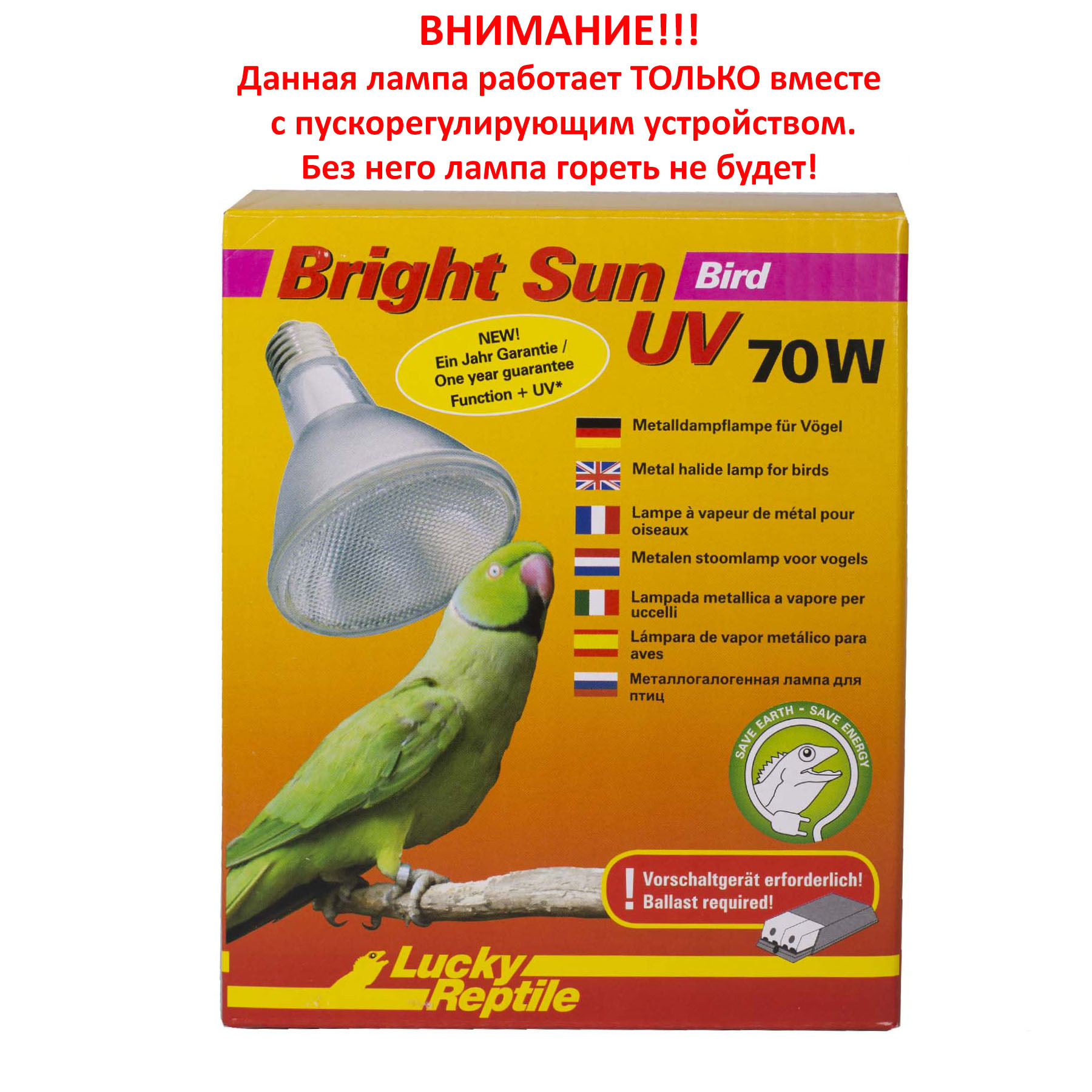 УФ лампа для птиц LUCKY REPTILE "Bight Sun UV Bird", E27, 70Вт (Германия)