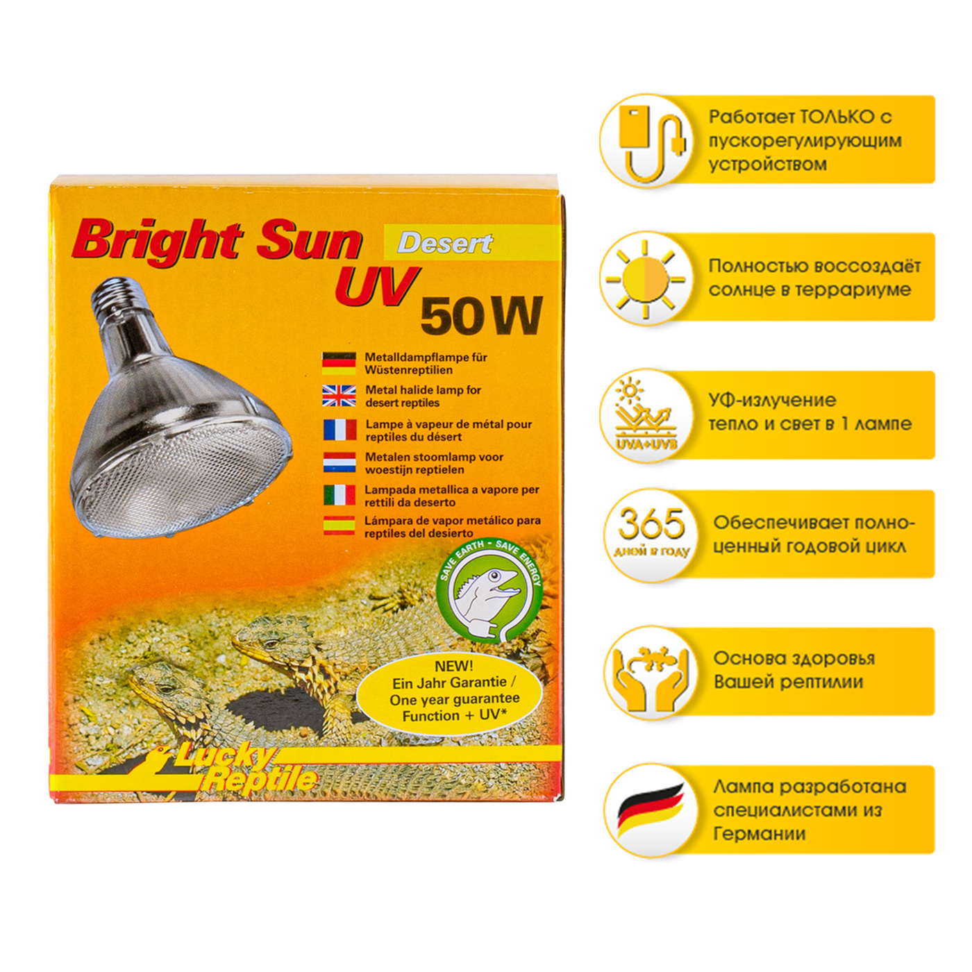 Лампа УФ для пустынных рептилий LUCKY REPTILE "Bright Sun Desert 50Вт" (Германия). Уцененный товар