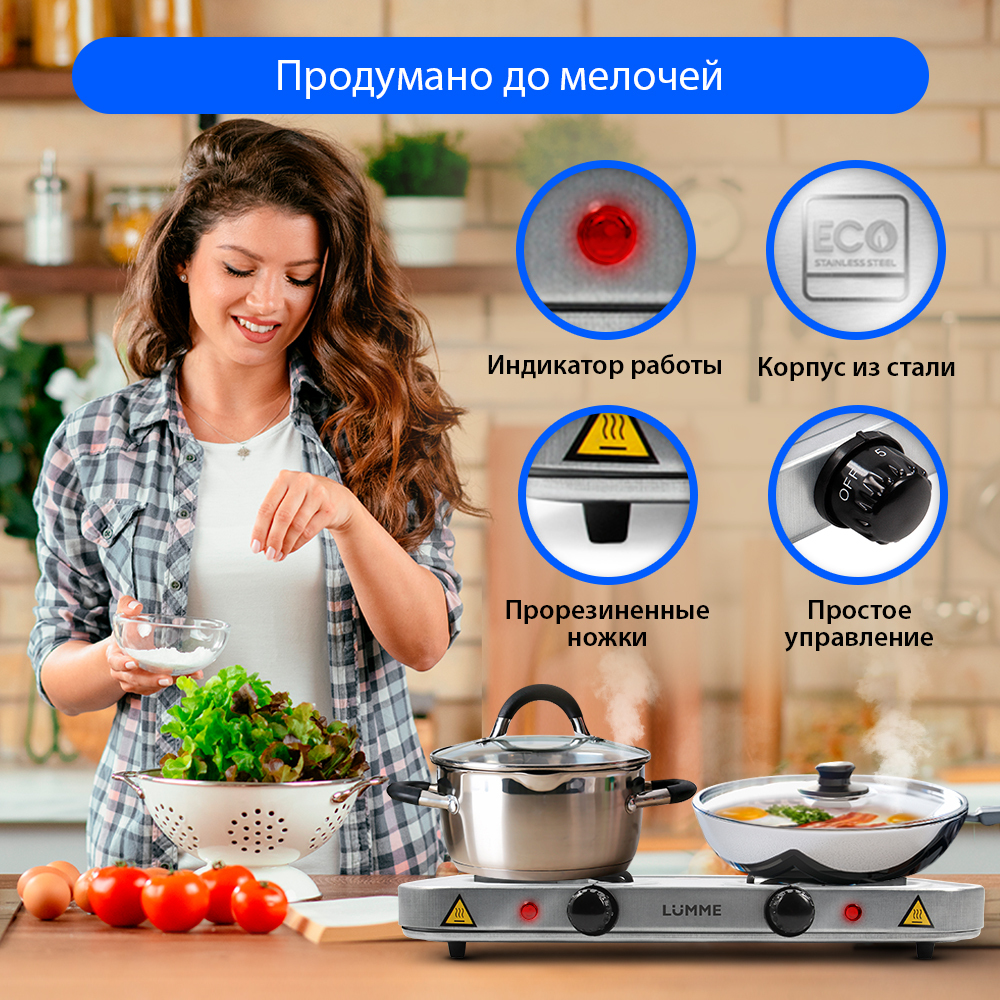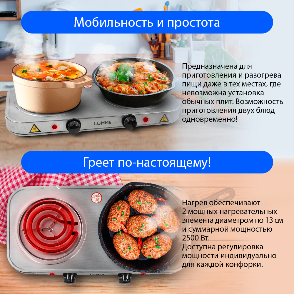 Электрическая Настольная плита Lumme LU-3618, серый металлик
