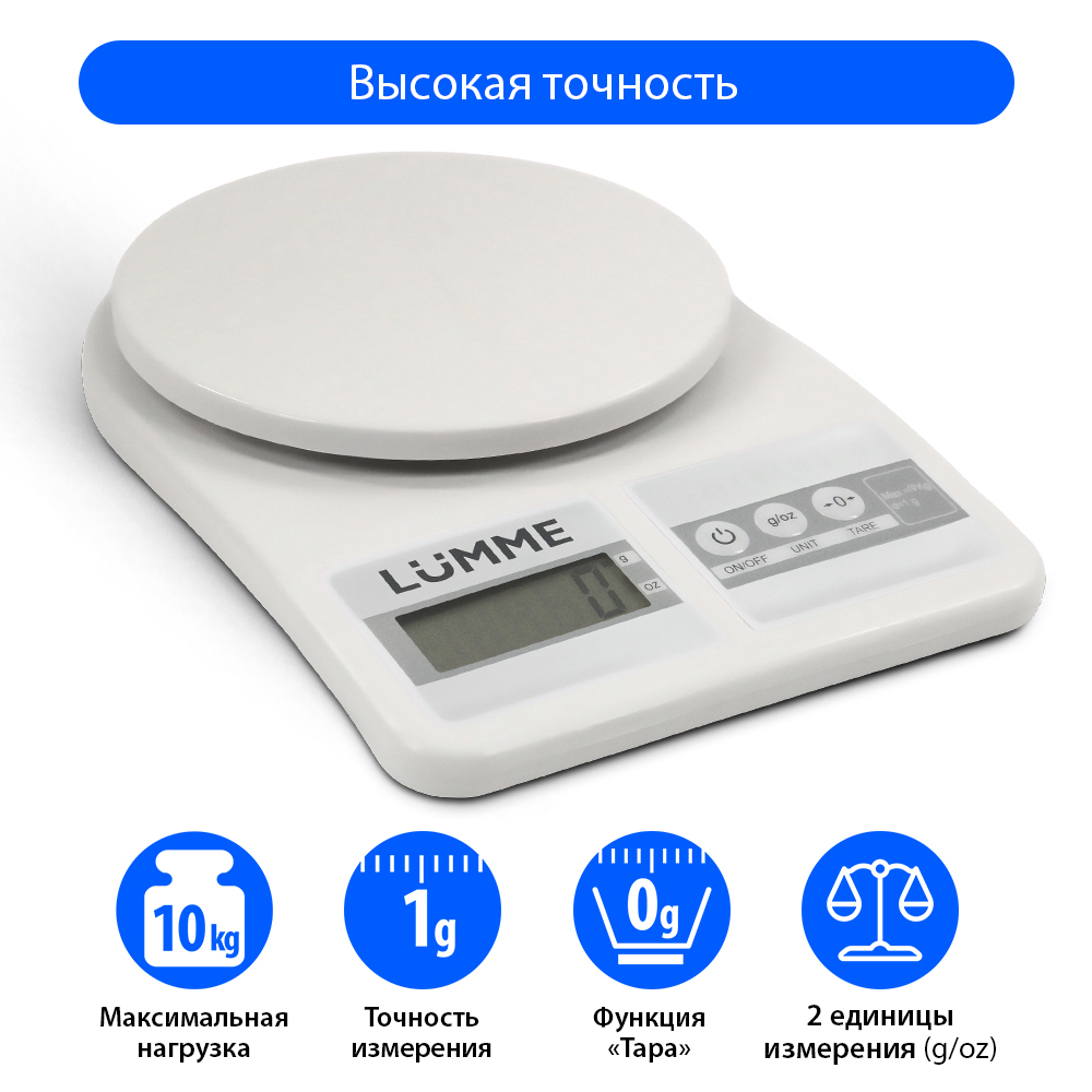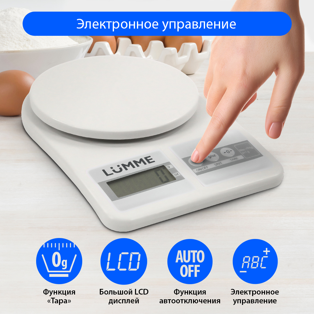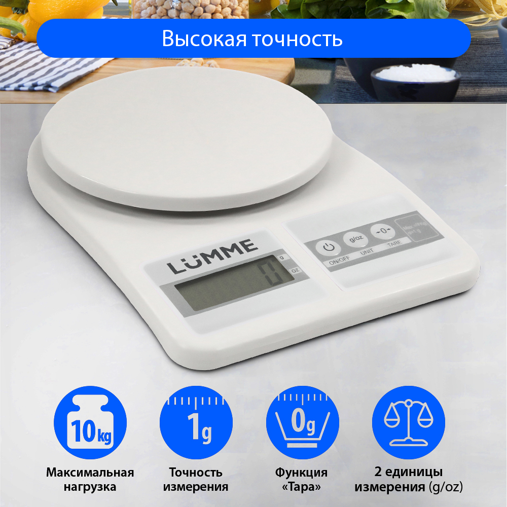 Электронные Кухонные весы Lumme LU-1348/Весы кухонные электронные/весы для кухни, белый