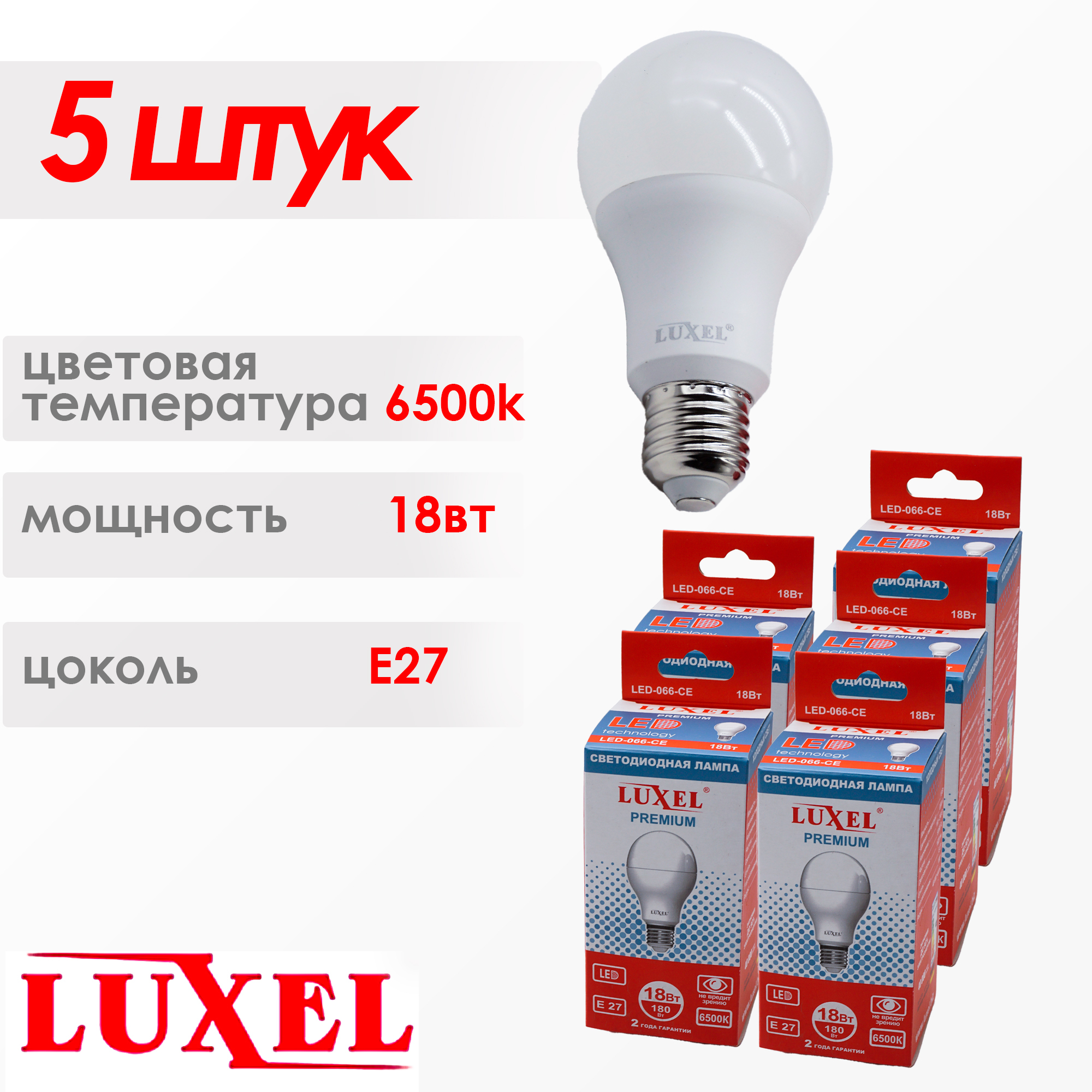 Лампочка LUXEL 066-СЕ-5, Холодный белый свет, E27, 18 Вт, Светодиодная, 5 шт.
