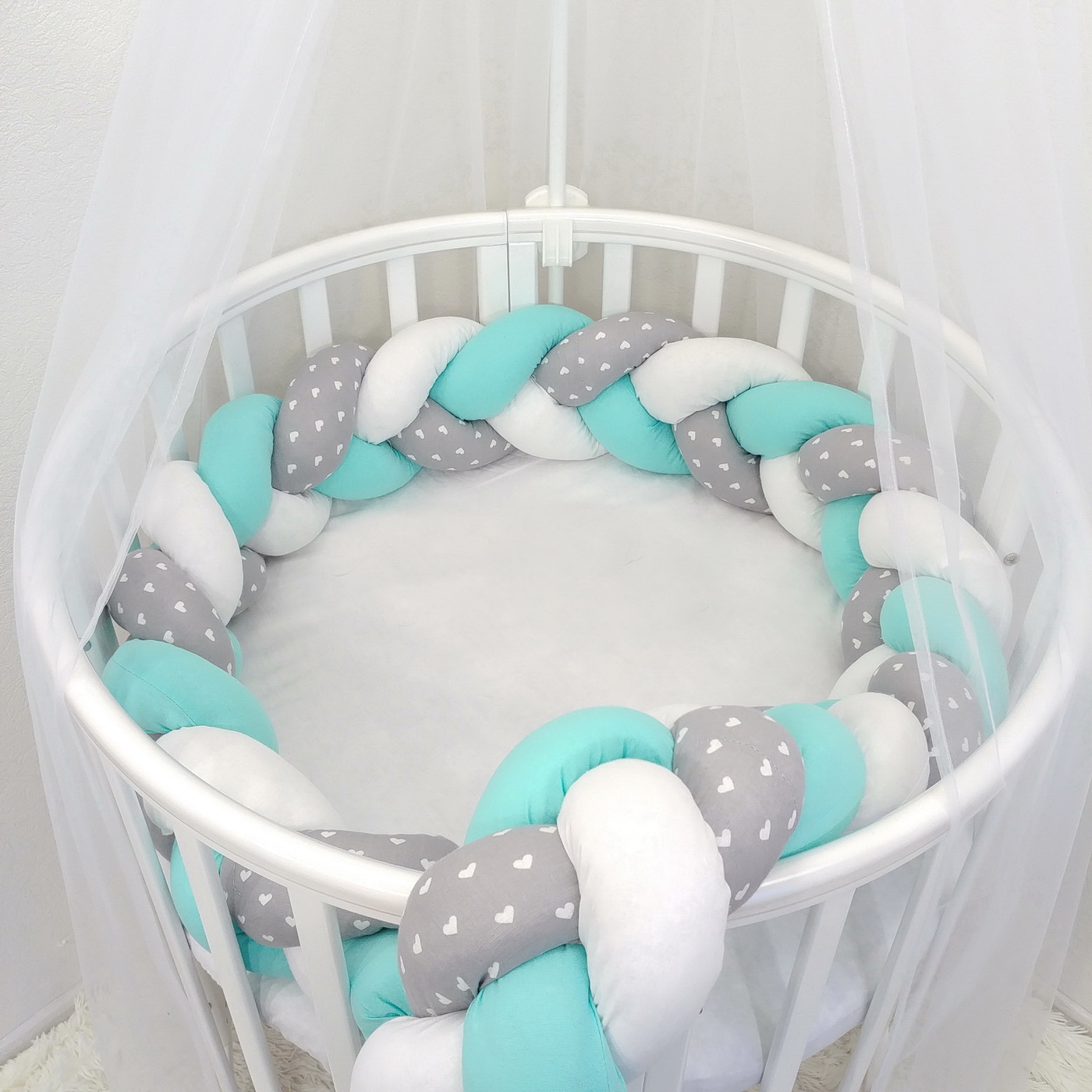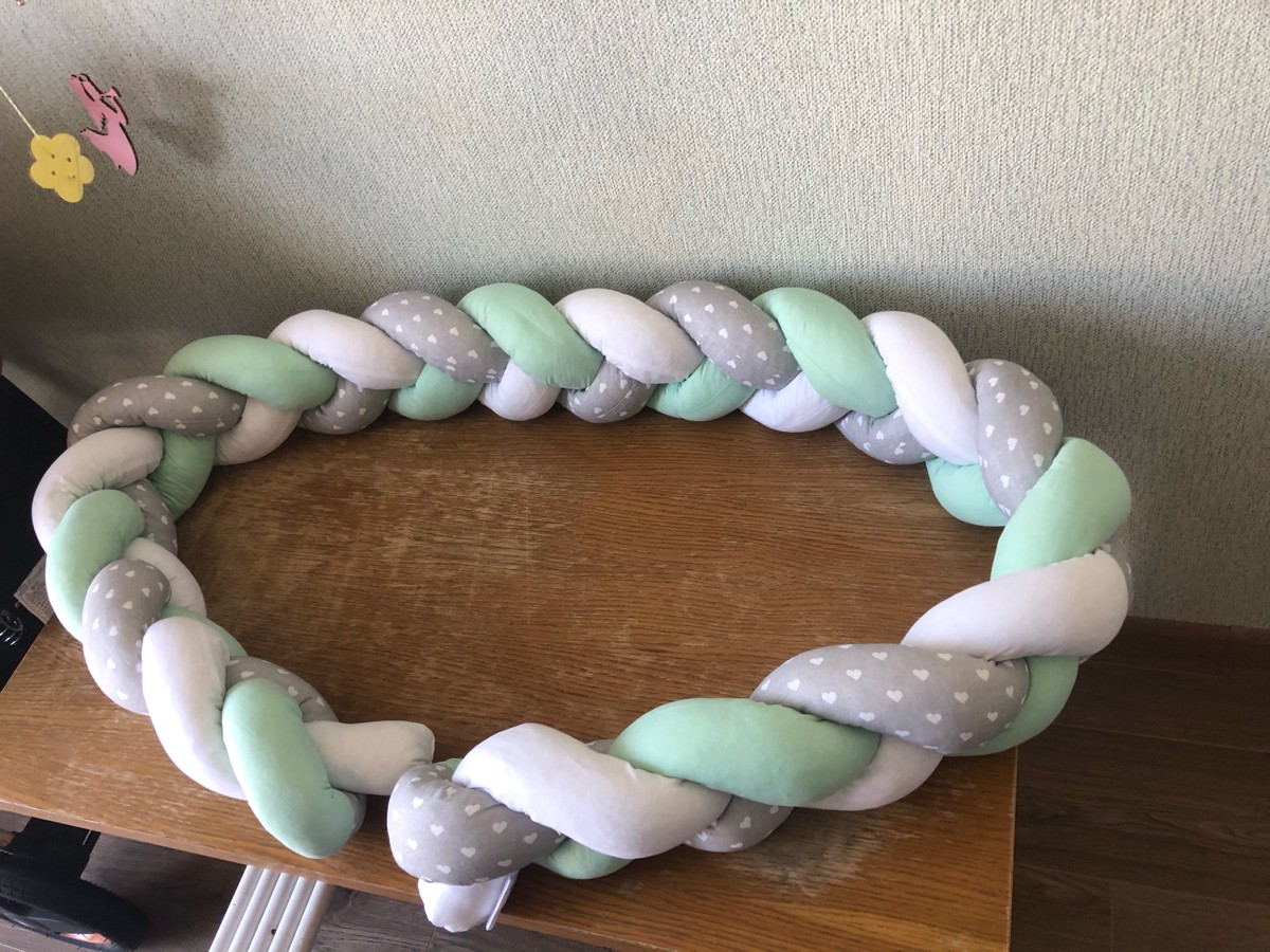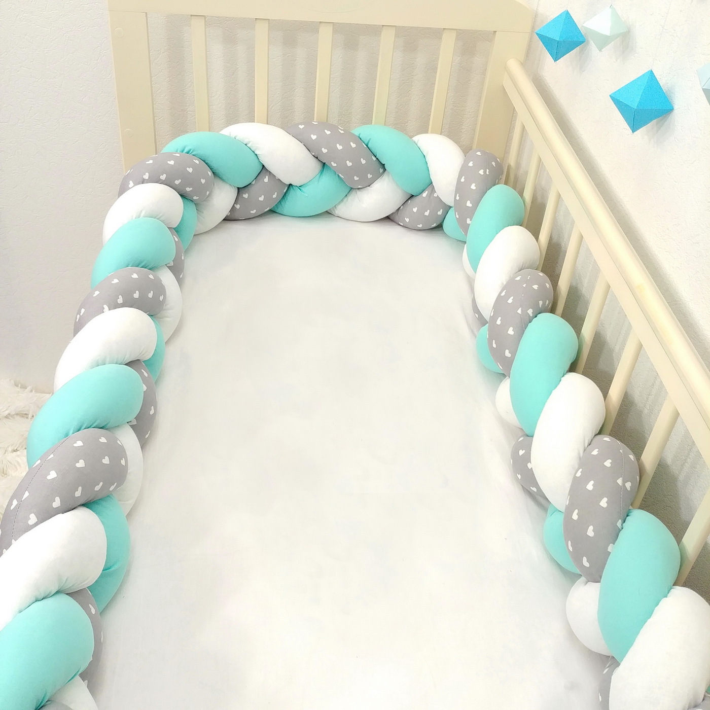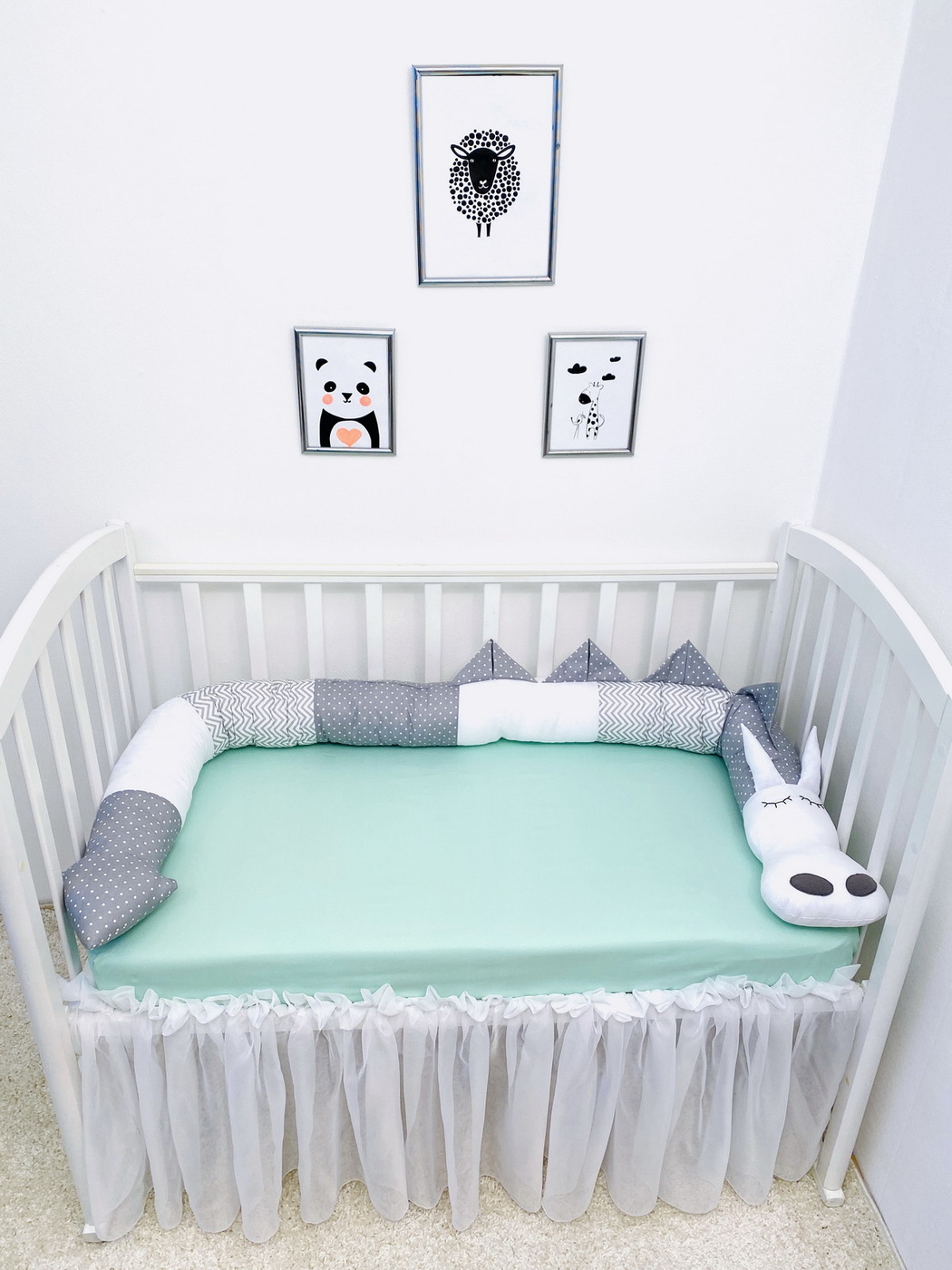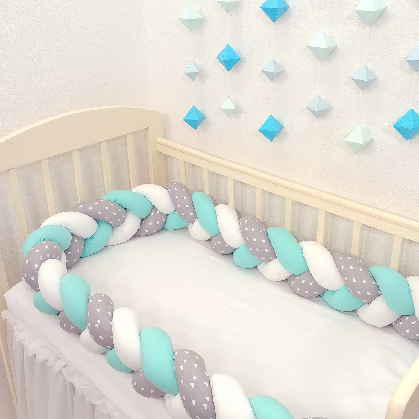 Бортик - коса в кроватку мятно - серая "Мятные сны" 220 см