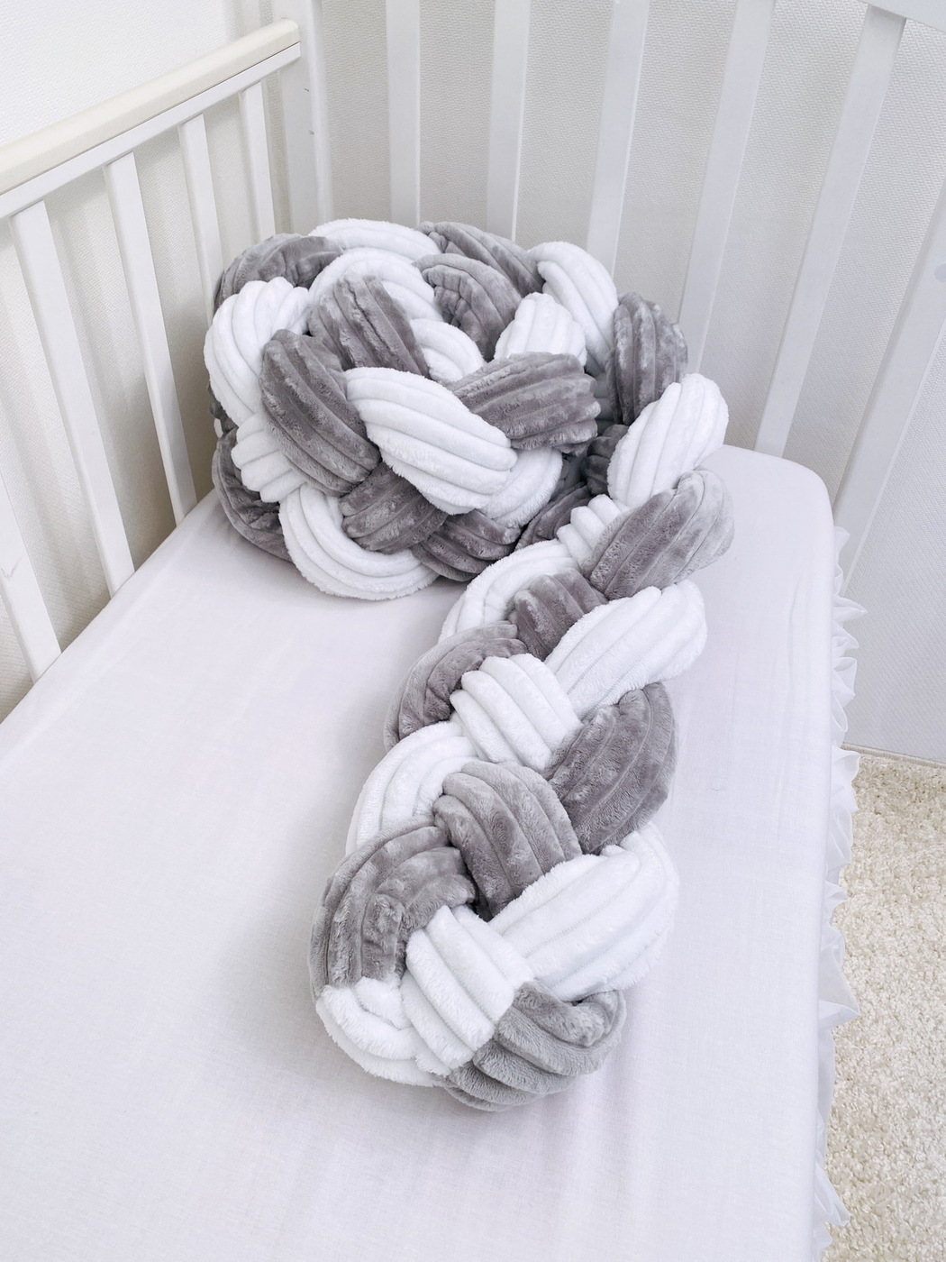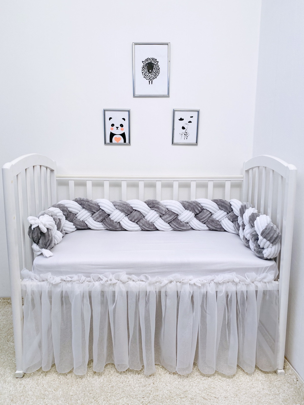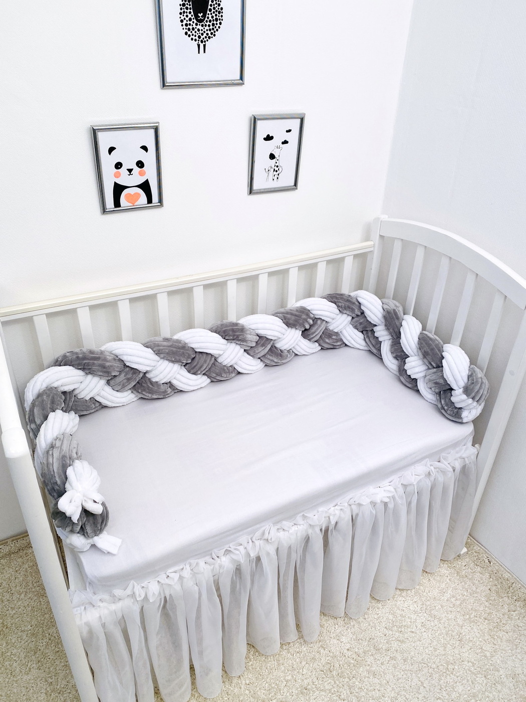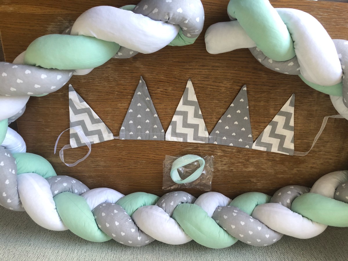 Бортик - коса в кроватку мятно - серая "Мятные сны" 220 см
