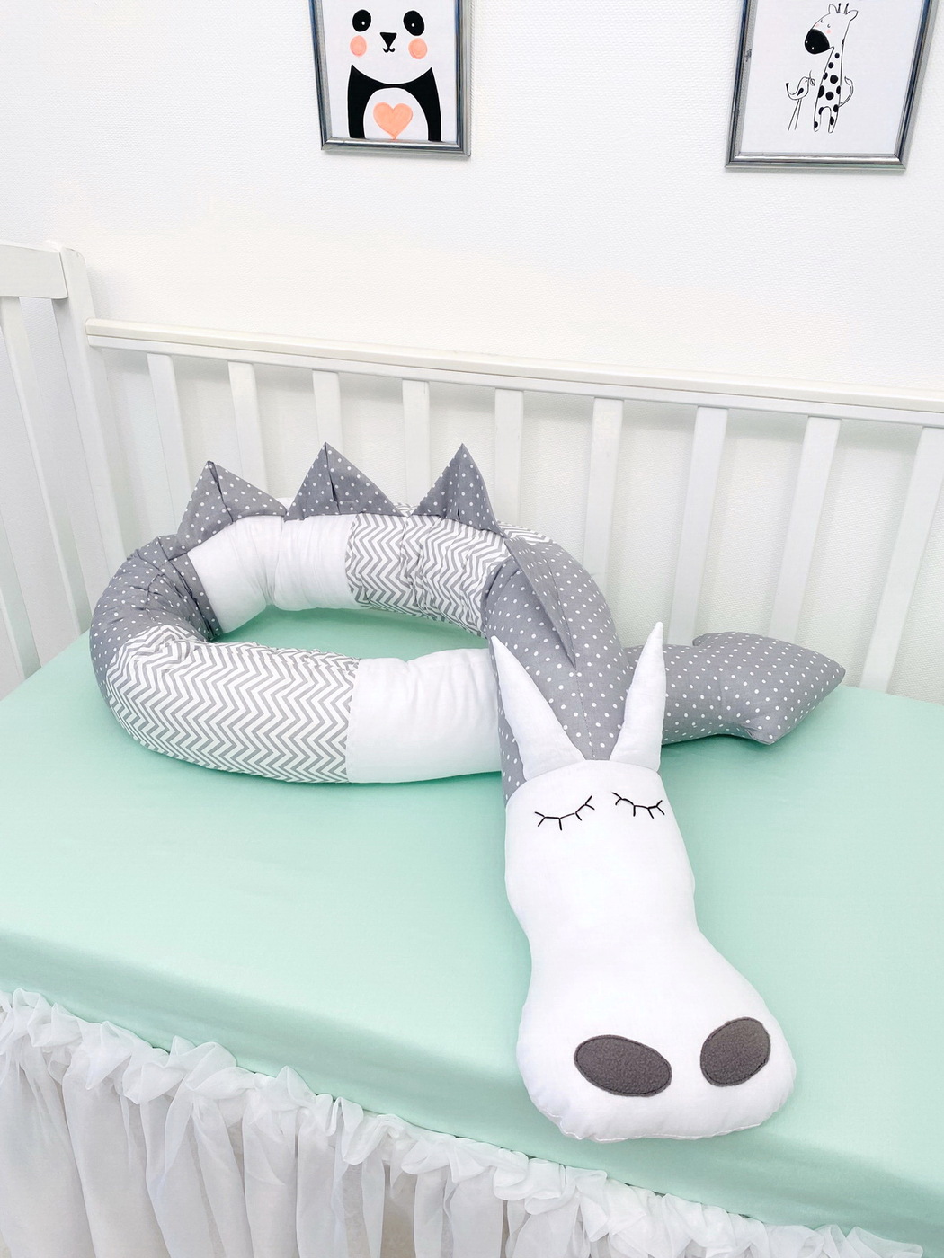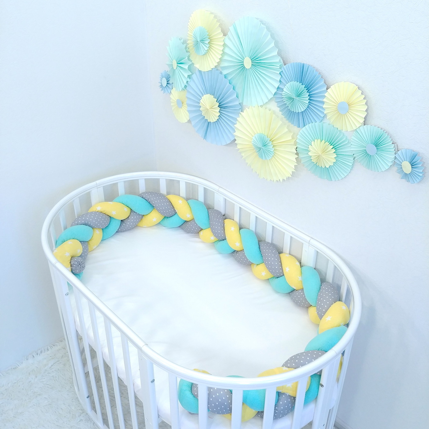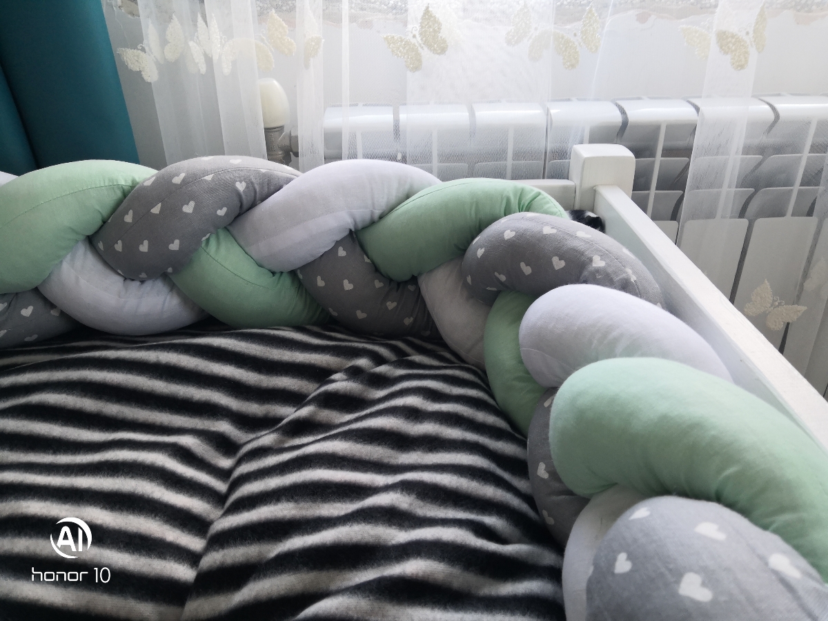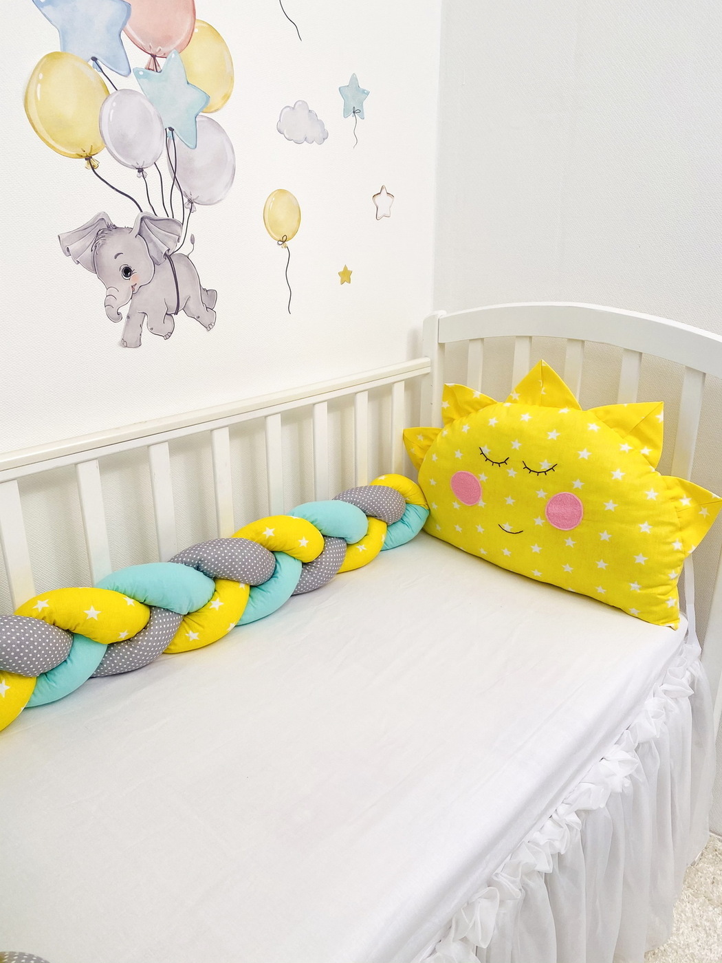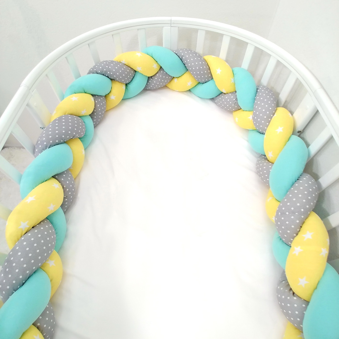 Бортик - коса в кроватку мятно - серая "Мятные сны" 220 см