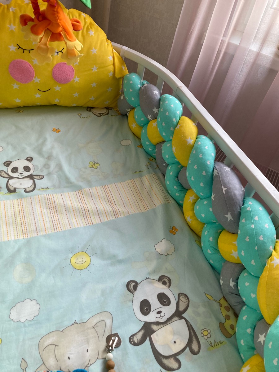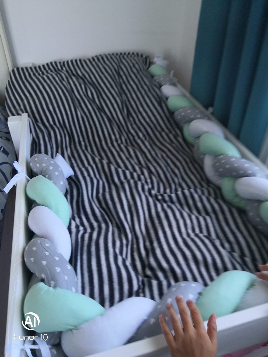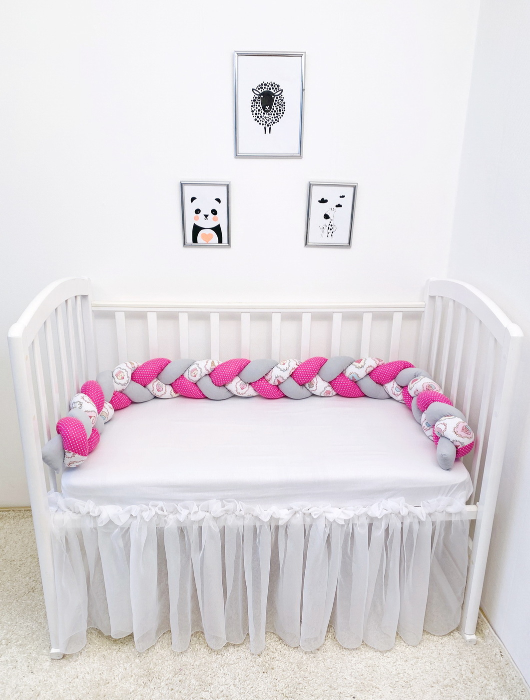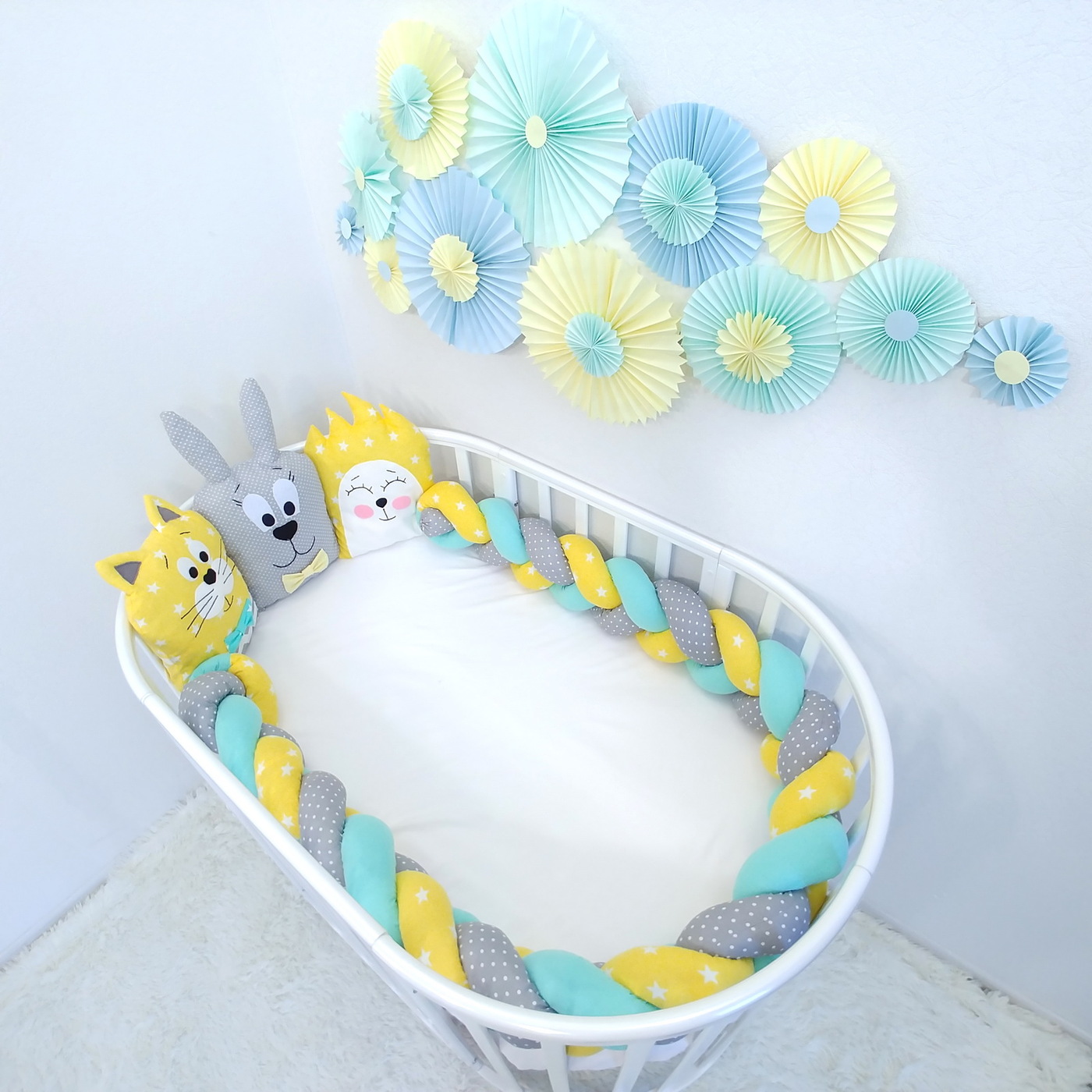 Бортик - коса в кроватку мятно - серая "Мятные сны" 220 см