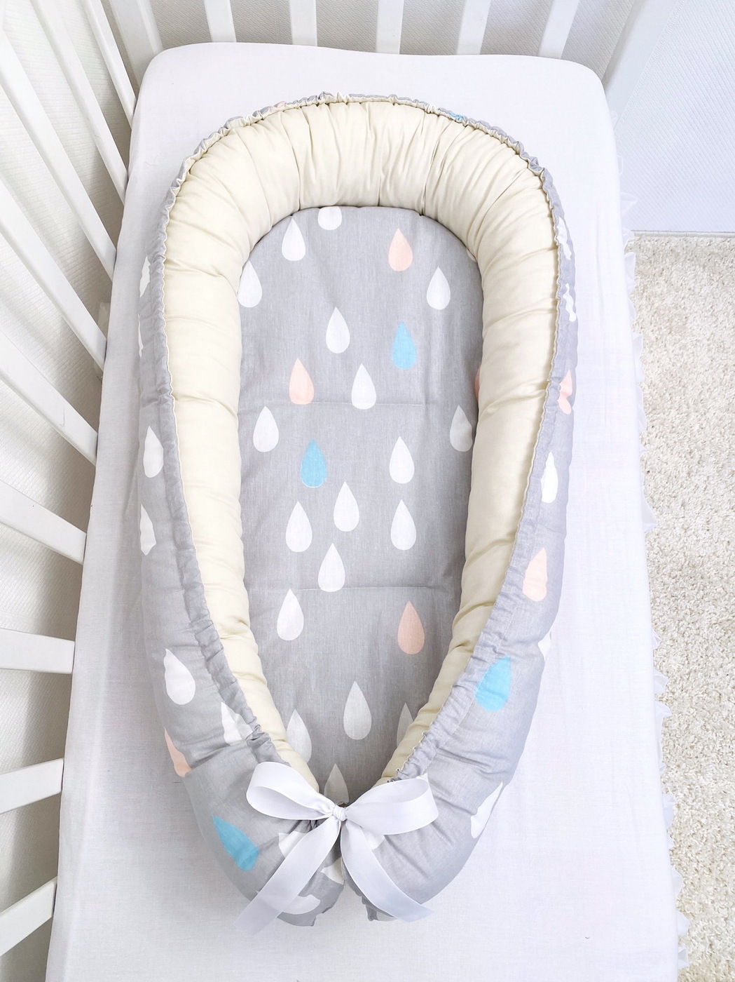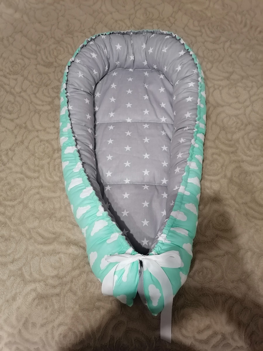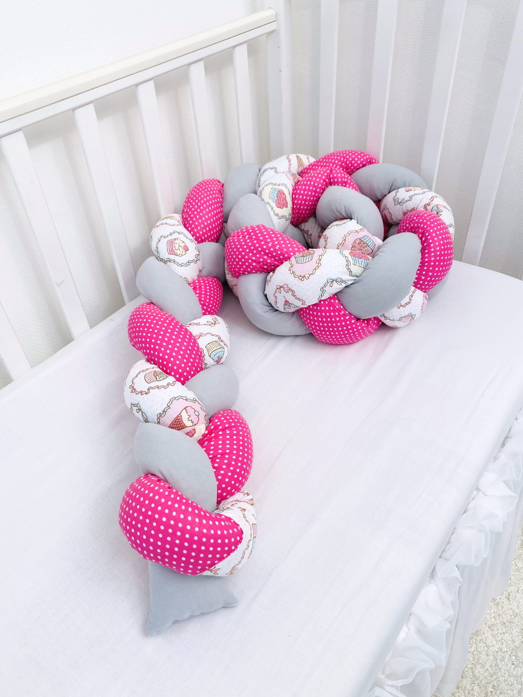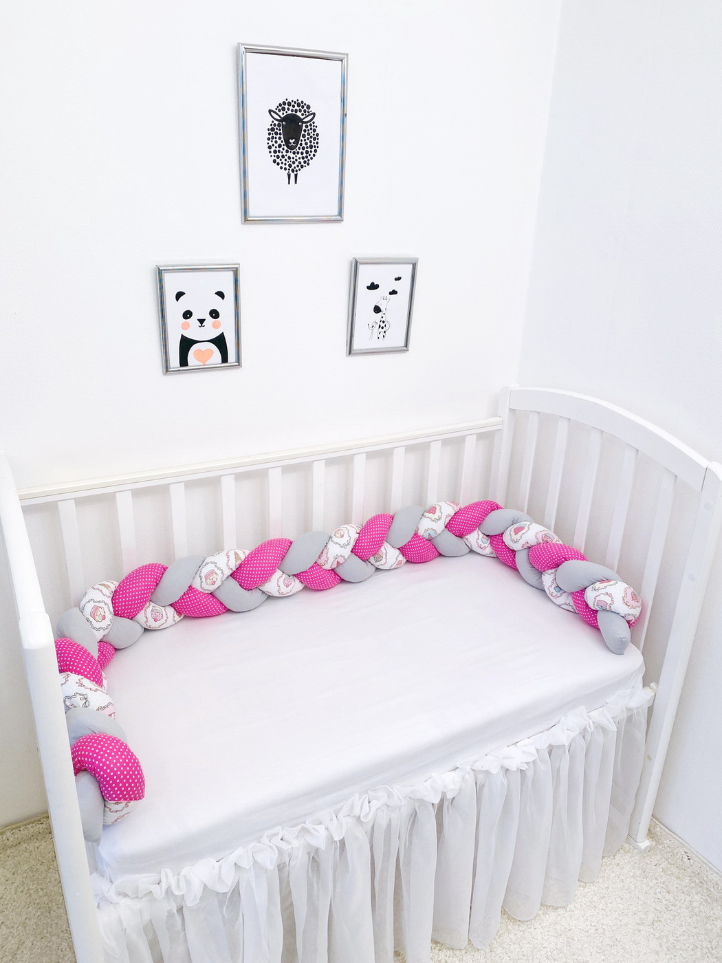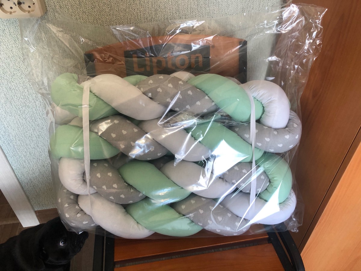 Бортик - коса в кроватку мятно - серая "Мятные сны" 220 см