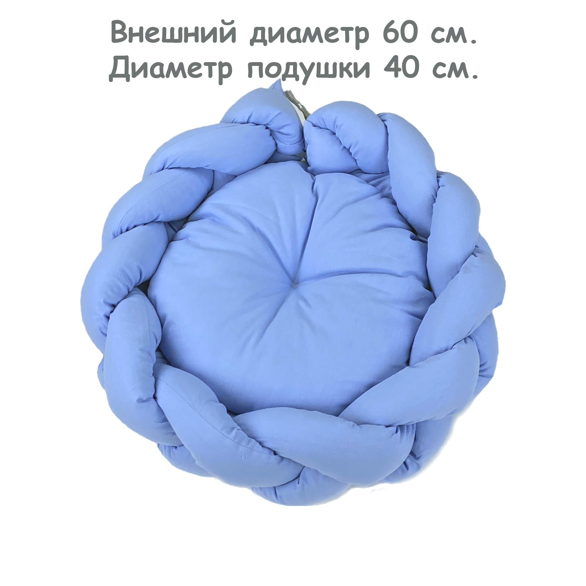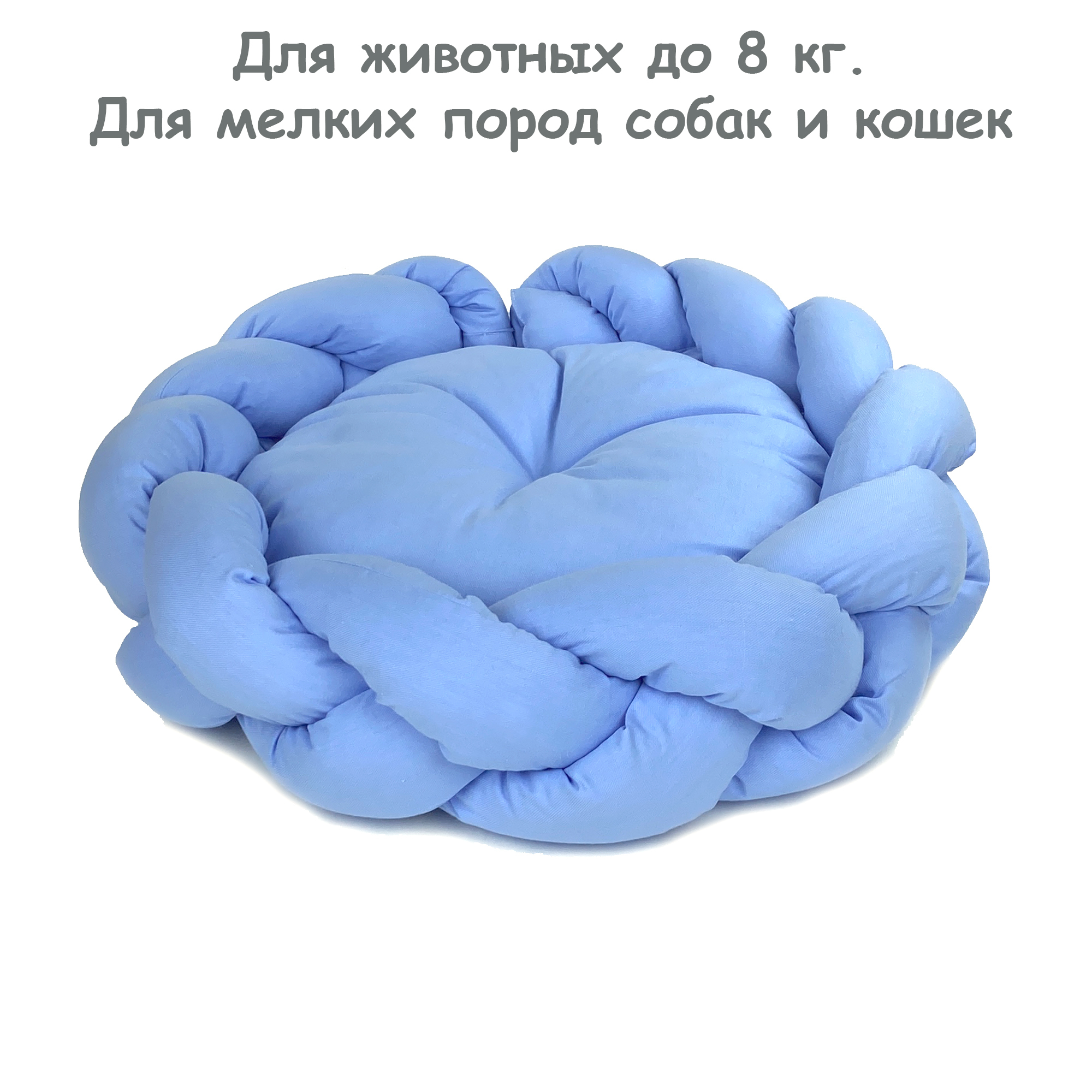 Лежанка для собак мелких пород, 60 см круглая из хлопка со съемной подушкой, голубая