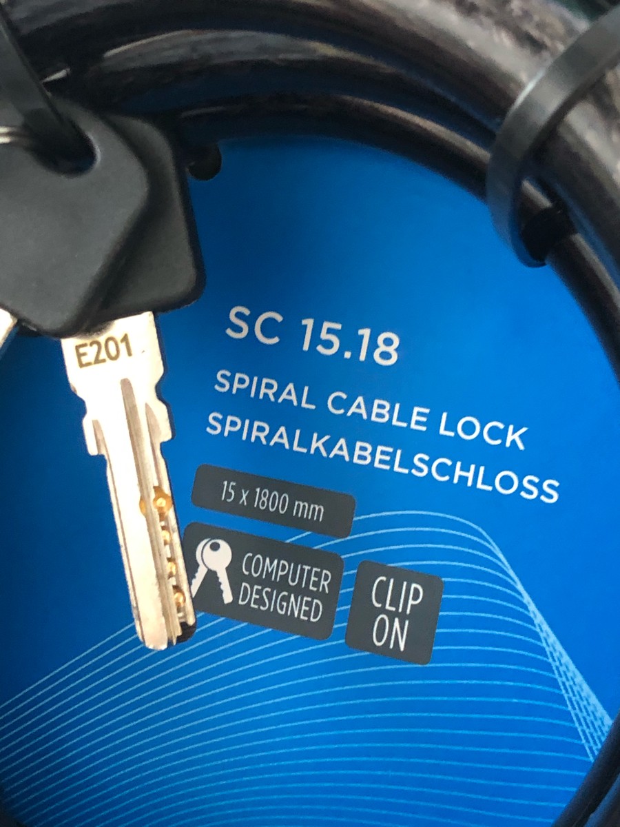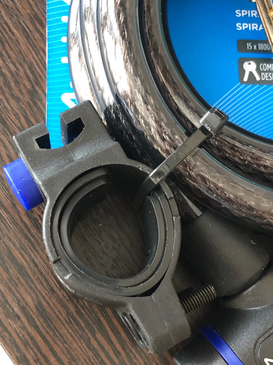 Замок 10х1800 мм, с ключом, с креплением за подседельный штырь, Цвет: Синий