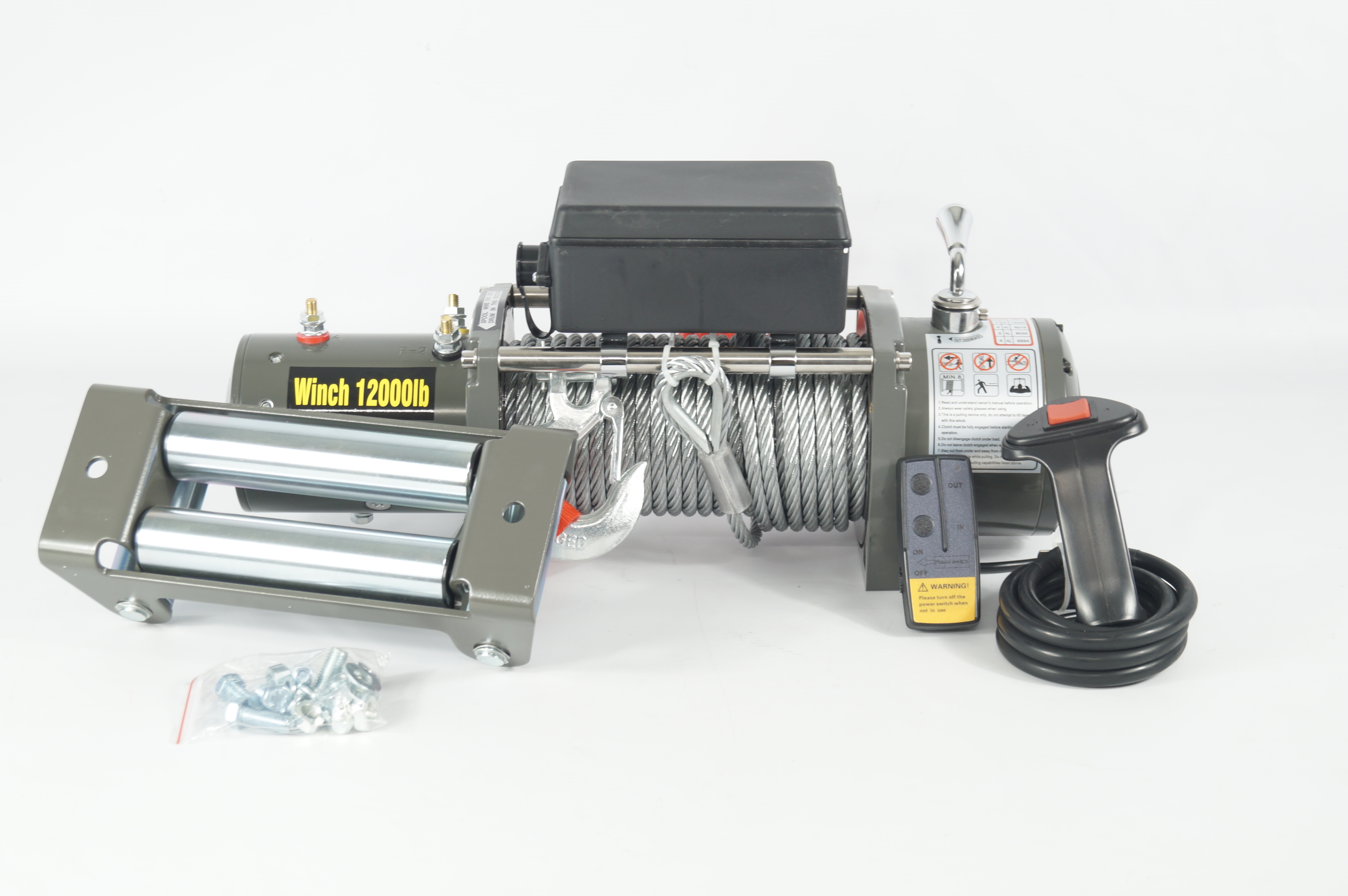 Лебедка электрическая 12V Electric Winch 12000lbs. 5443 кг. Съемный блок управления, стальной трос.