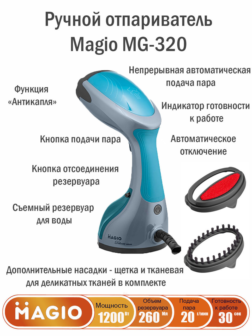 Утюг Magio MG-136, с керамической подошвой и функцией вертикального отпаривания, 2200 Вт