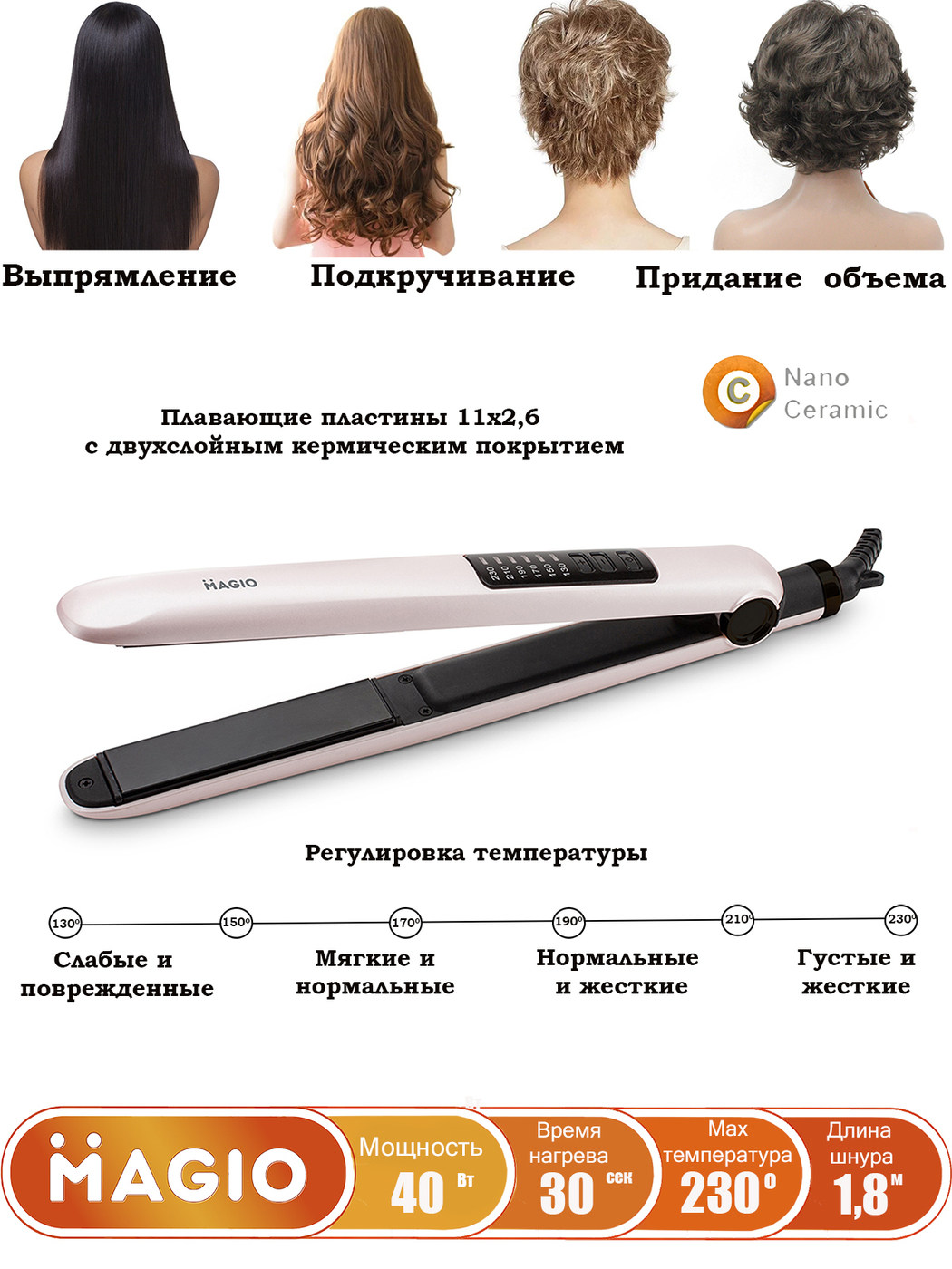 Щипцы для завивки волос с керамическими пластинами MG-670