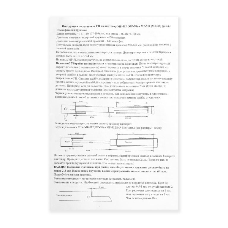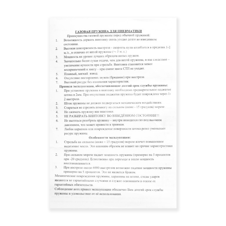 Пружина газовая МР-512 Стандарт 120атм + усиленная манжета