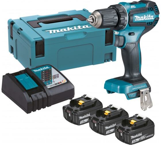 Дрель-шуруповерт Makita DDF485RF3J, От аккумулятора, 18 В, 50 Нм, 3 АКБ