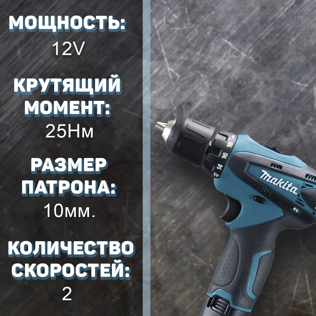 Дрель-шуруповерт Makita DF330DWE, 12 В, 25 Нм