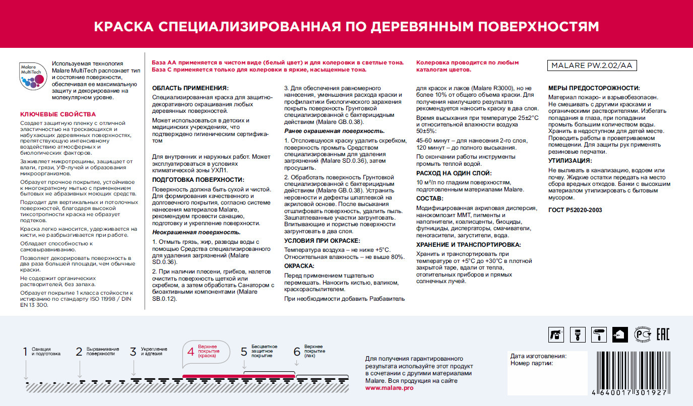 Лазурь-антисептик Malare по деревянным поверхностям, водная, Желтый, 0,9л