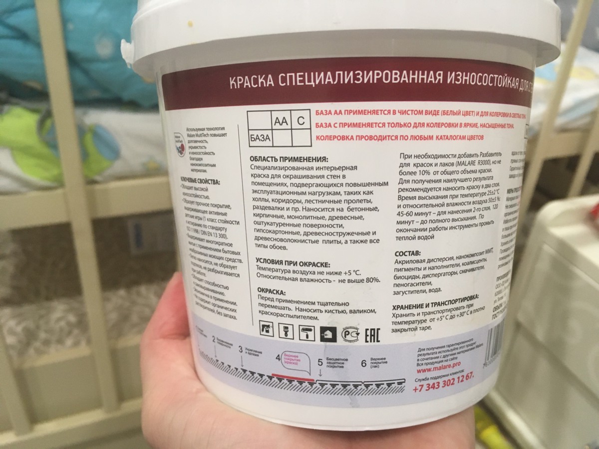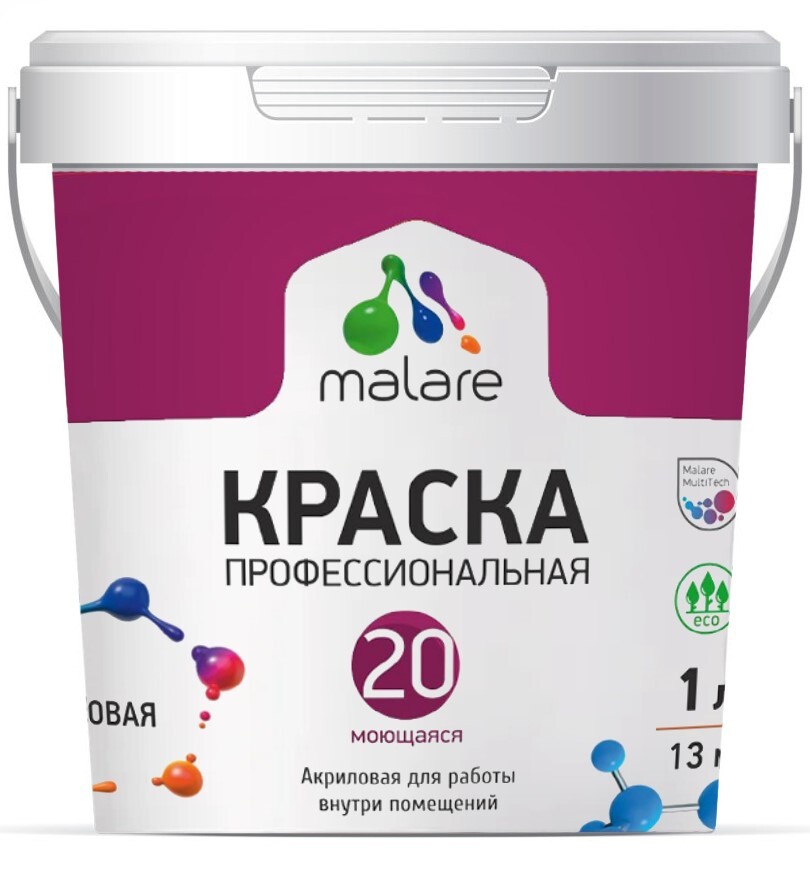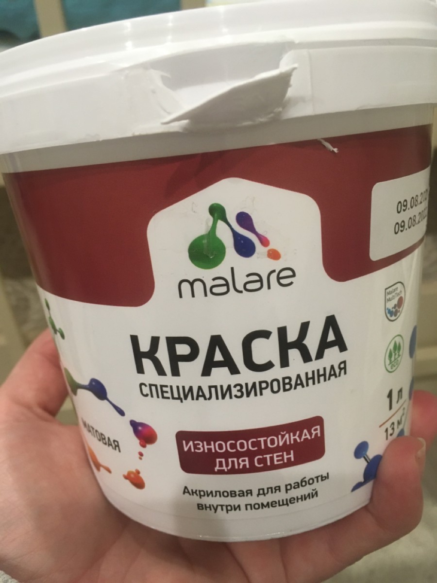 Краска Malare Износостойкая интерьерная Быстросохнущая, Матовое покрытие, 1.5 кг, голубой