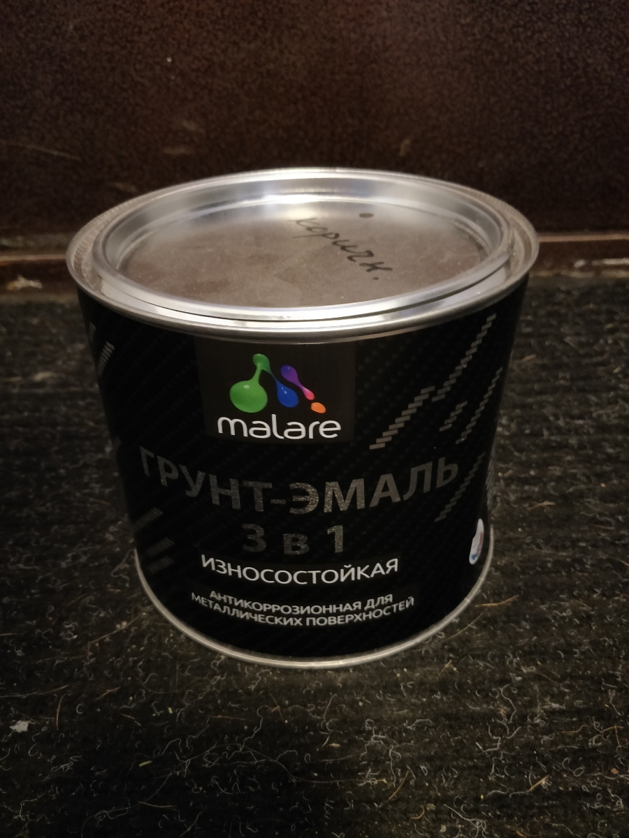 Грунт-эмаль, Краска Malare Износостойкая 3 в 1, Уретано-алкидная, Полуматовое покрытие, 1.2 кг, черный
