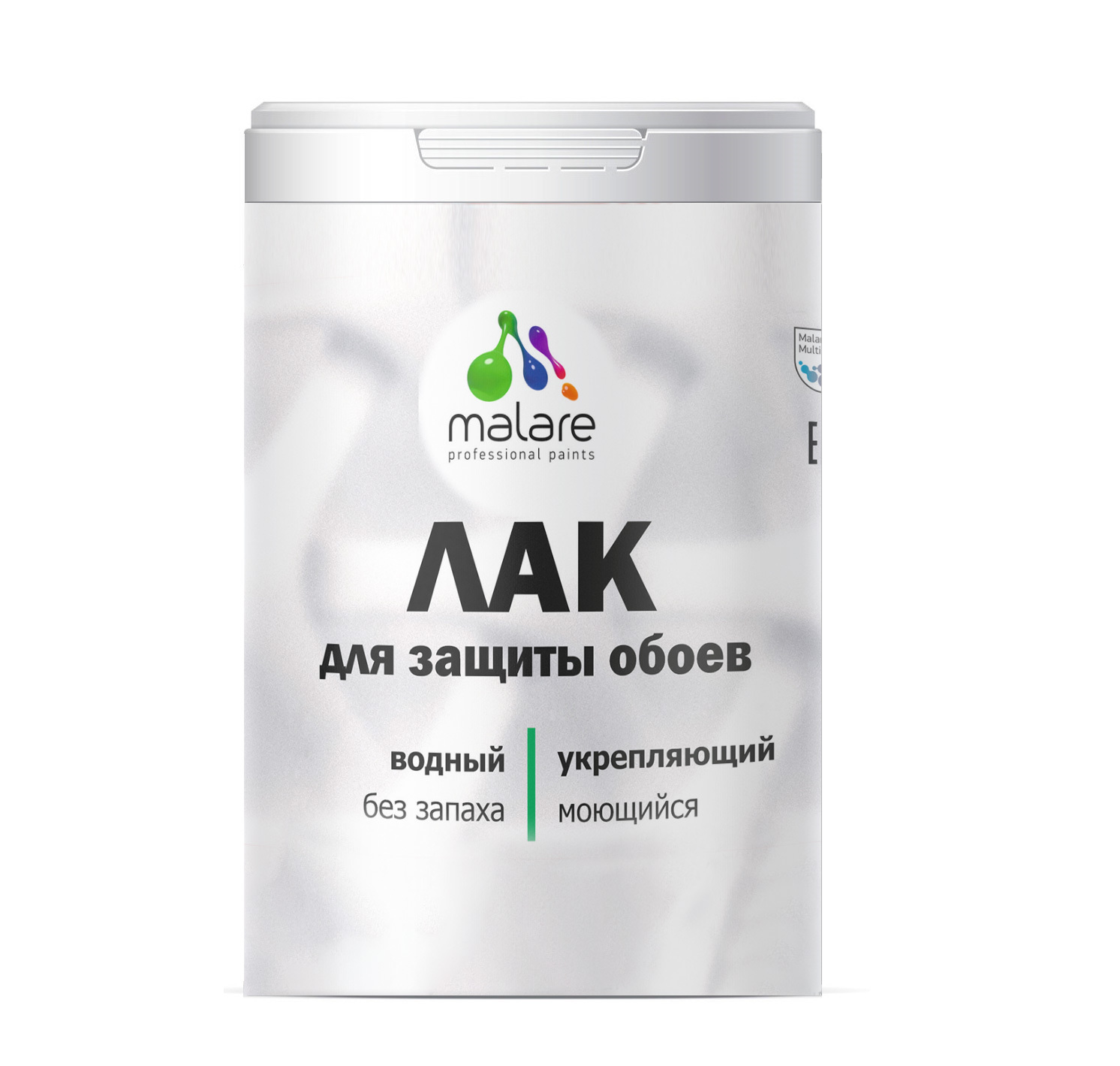 Лак водный Malare для защиты обоев, деревянных и минеральных поверхностей, высокопрочный, без запаха, полиуретановый, бесцветный, 1,8 кг