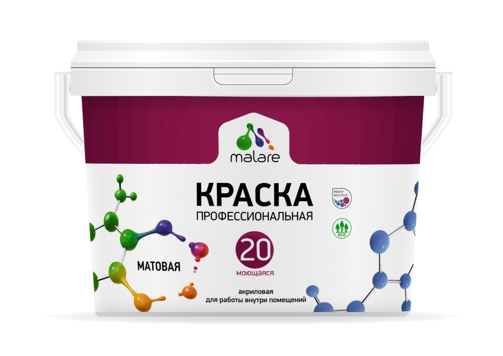 Краска Malare Моющаяся интерьерная №20 Быстросохнущая, Водно-дисперсионная, Акриловая, Матовое покрытие, 3.9 кг, светло-серый