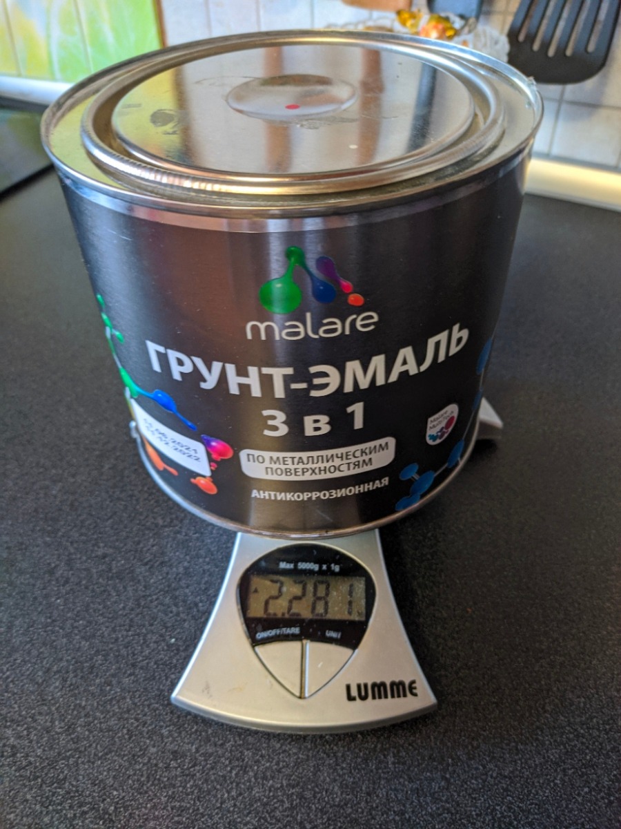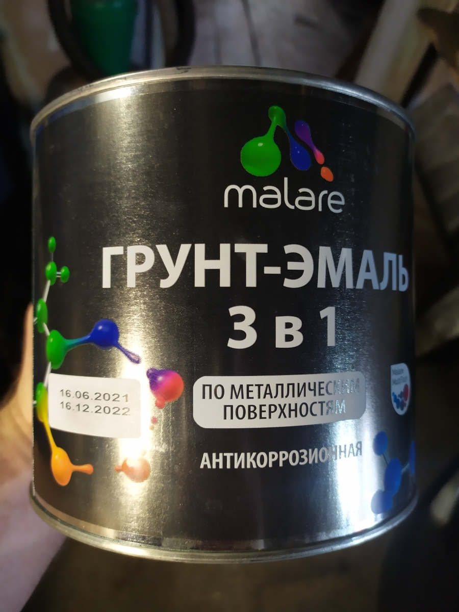 Грунт-эмаль, Краска Malare Износостойкая 3 в 1, Уретано-алкидная, Полуматовое покрытие, 2.4 кг, светло-серый