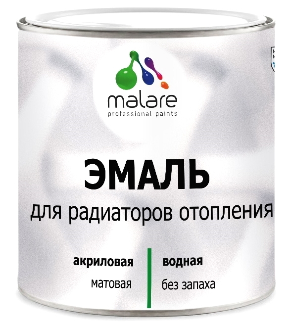 Краска Malare Водная, Для труб и радиаторов;Водная, Для труб и радиаторов Термостойкая, Матовое покрытие, 1 кг, белый