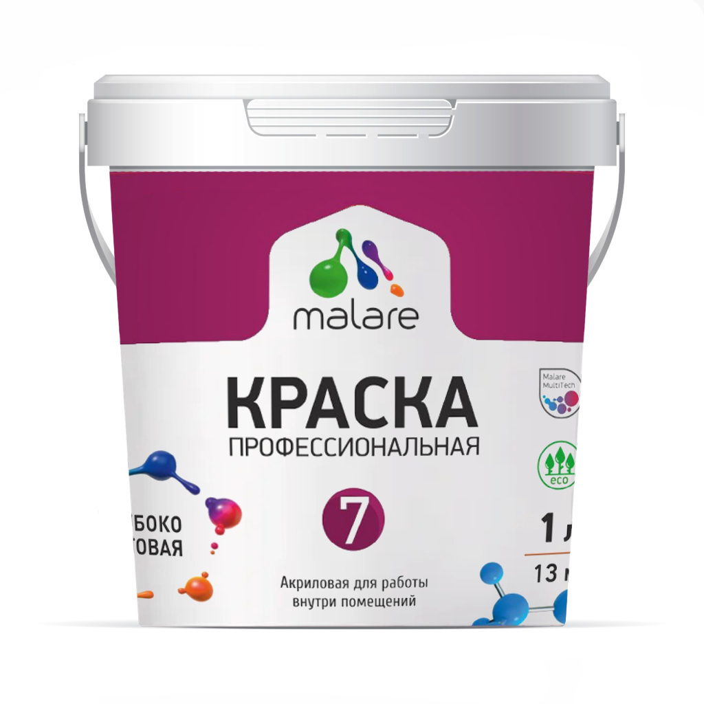 Краска Malare Professional Евро №7 Быстросохнущая, Водно-дисперсионная, Акриловая, Матовое покрытие, 1.5 кг, бежевый