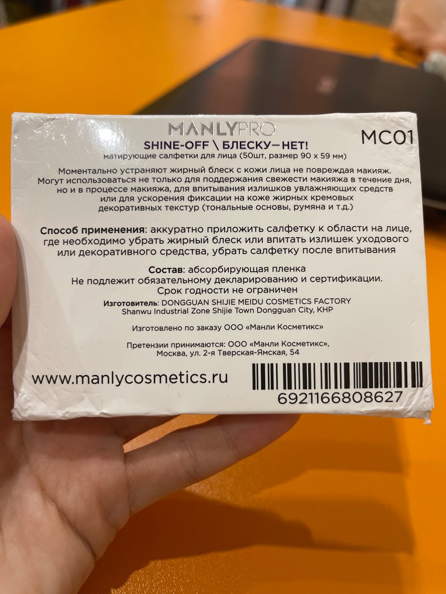 MANLY PRO Матирующие салфетки 50 листов МС01