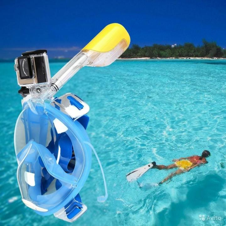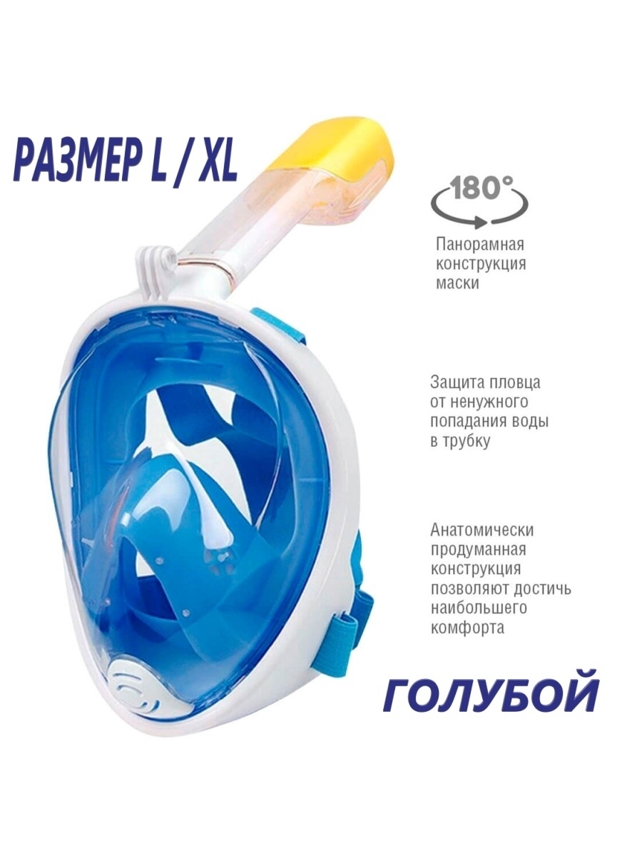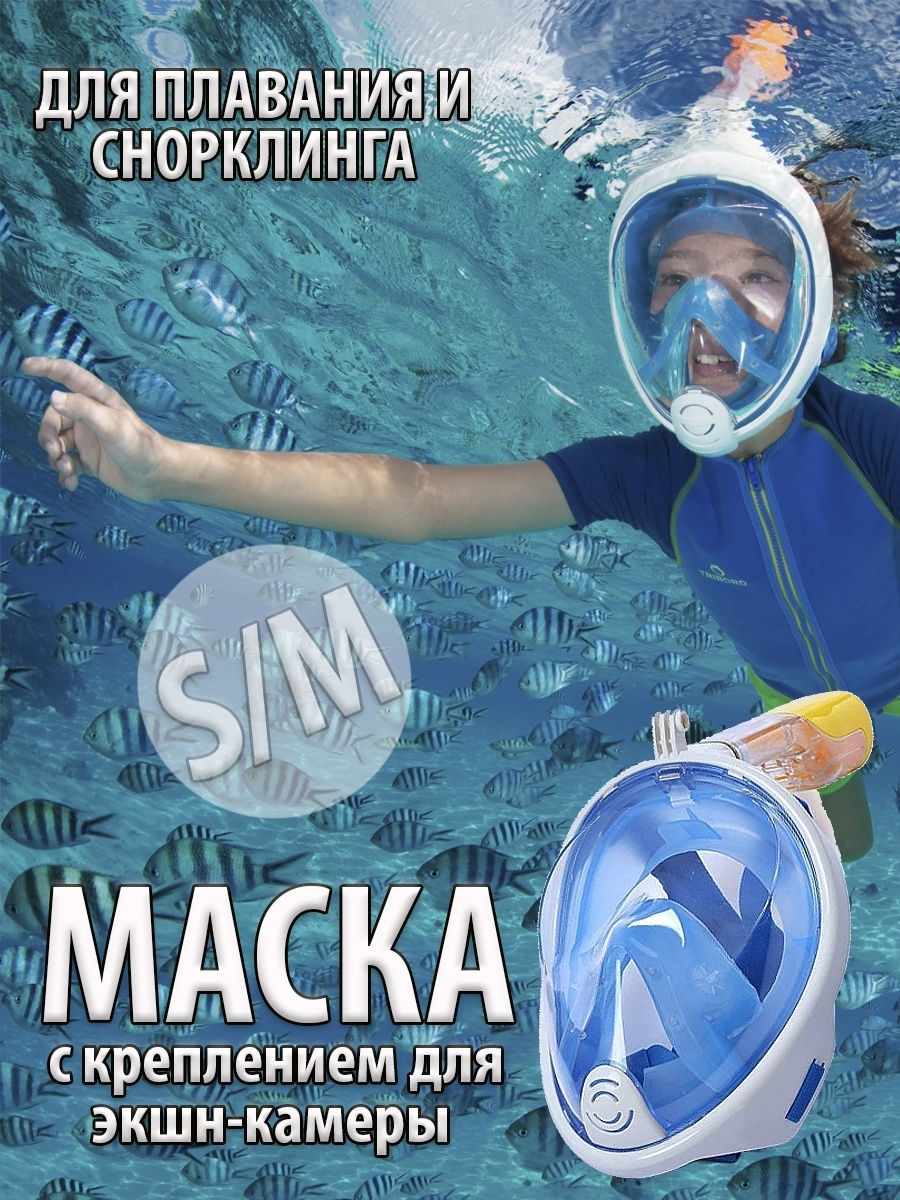 Маска для снорклинга полнолицевая с креплением для экшн-камеры S-M