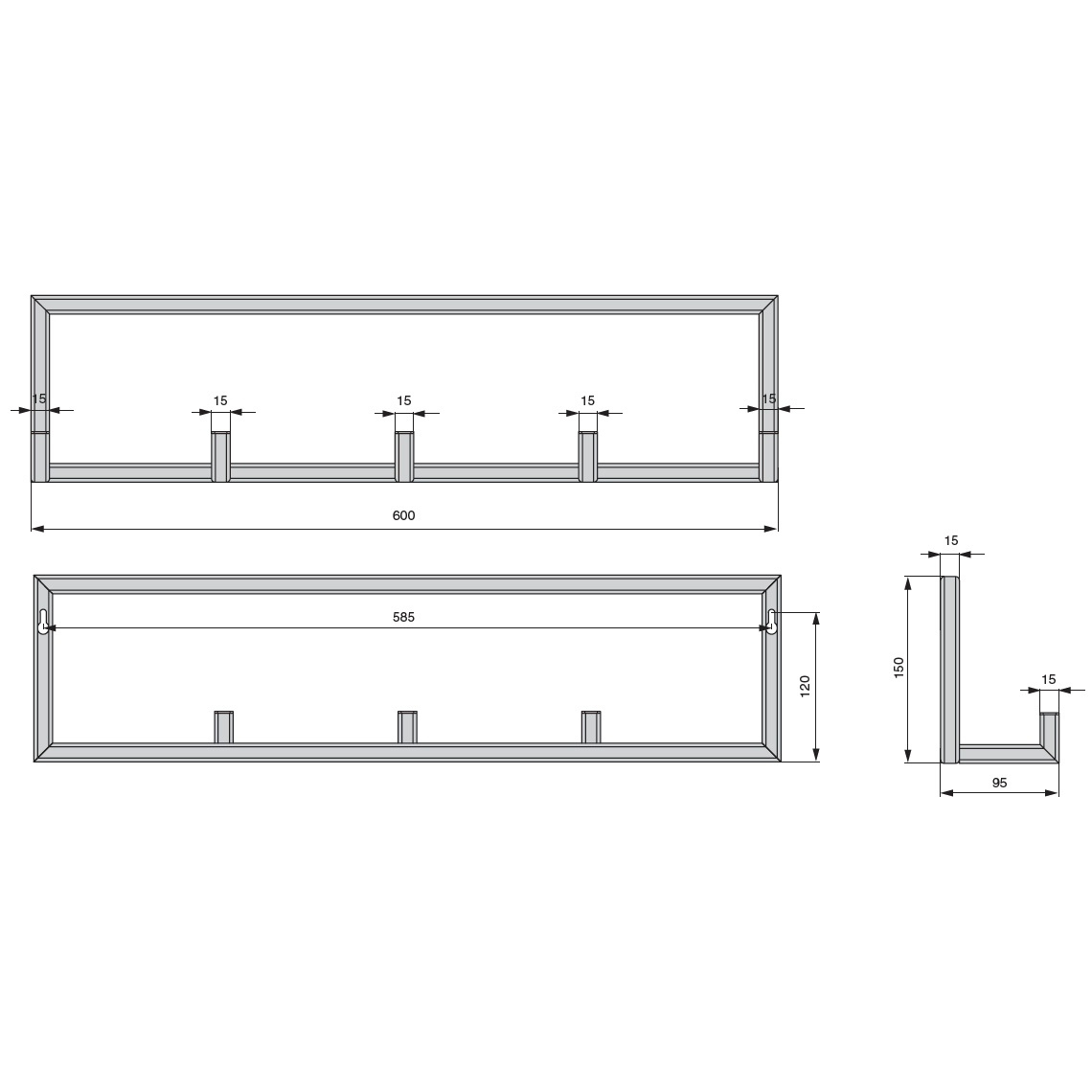 Вешалка в прихожую, Вешалка настенная Вешалка для одежды L. 600 с 5 крючками, 60х9,5х15 см