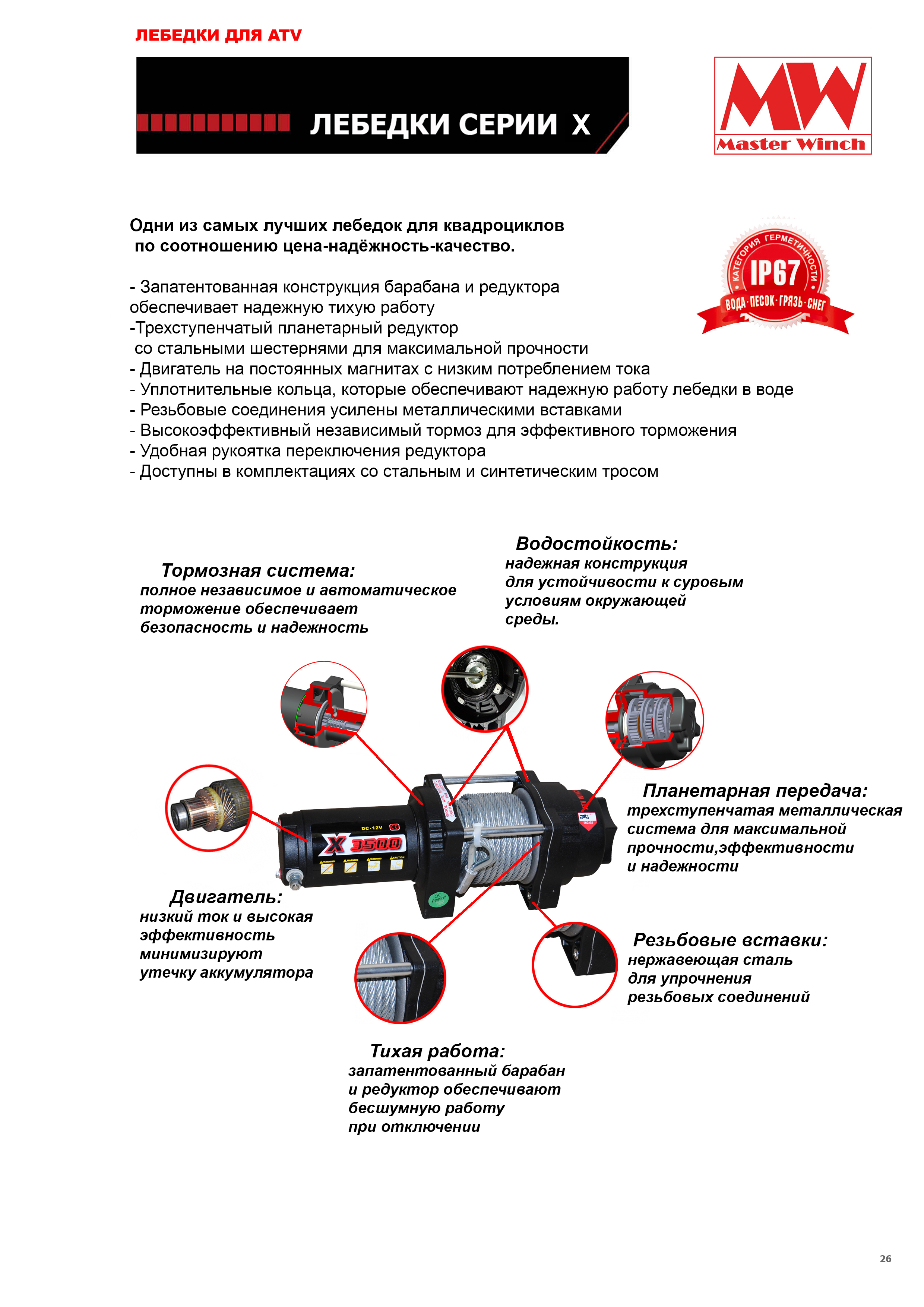 Лебедка для квадроцикла электрическая MW X3500S с синтетическим тросом Master Winch 4.01.02.03S