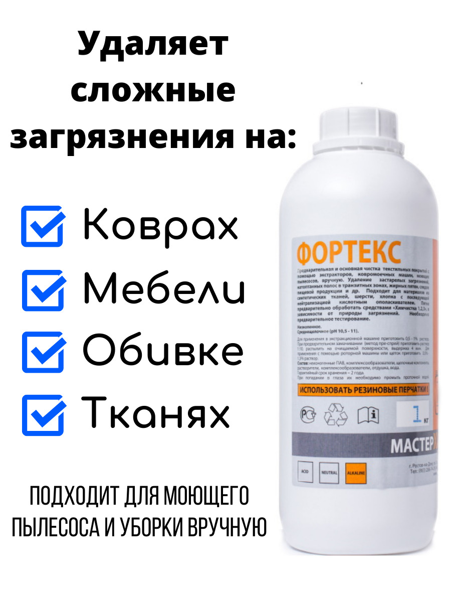 Концентрат щелочной для очистки сложных загрязнений на коврах и мебели/ ФОРТЕКС 1кг