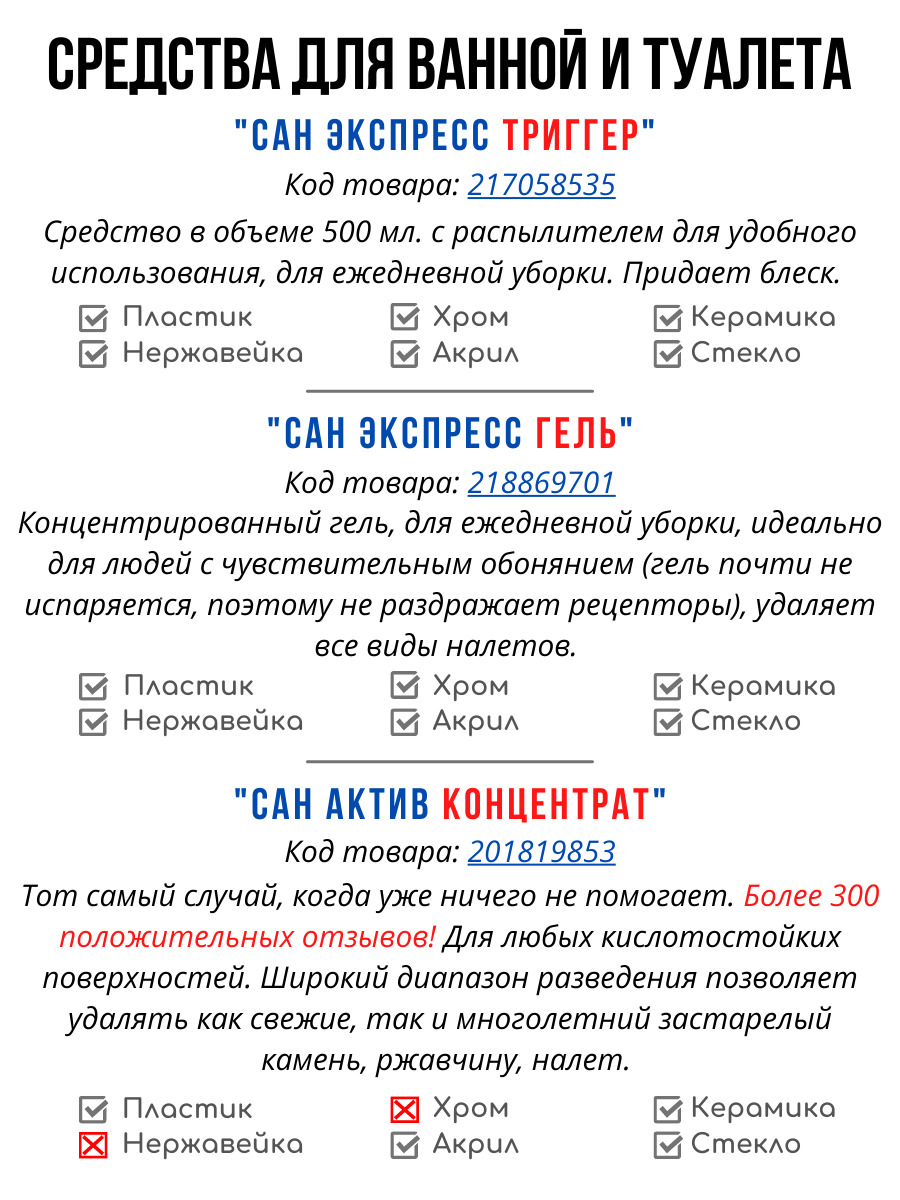 Для удаления известкового налета и ржавчины, водного камня, концентрат САН АКТИВ 1кг