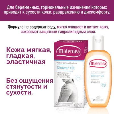 Матернеа (Maternea) Масло для душа/ гель для душа/ для беременных/ увлажняющее масло, 210 мл