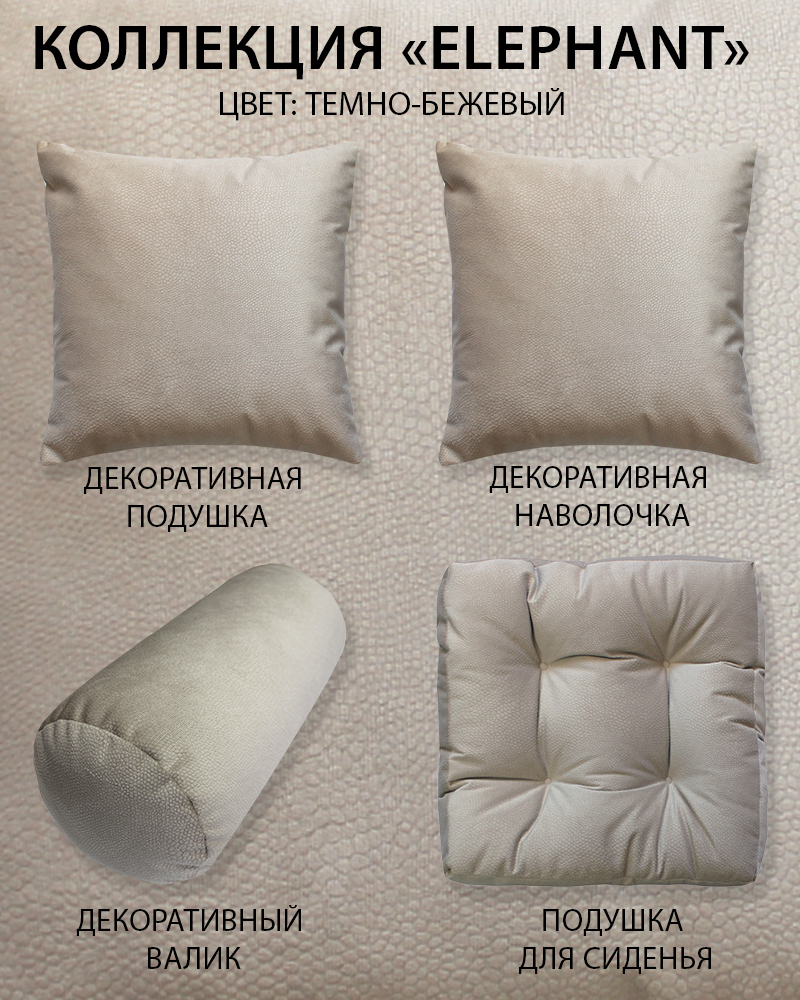 Подушка декоративная MATEX ELEPHANT ВАЛИК 39х19х19. Цвет - темно-бежевый, арт. 44-864