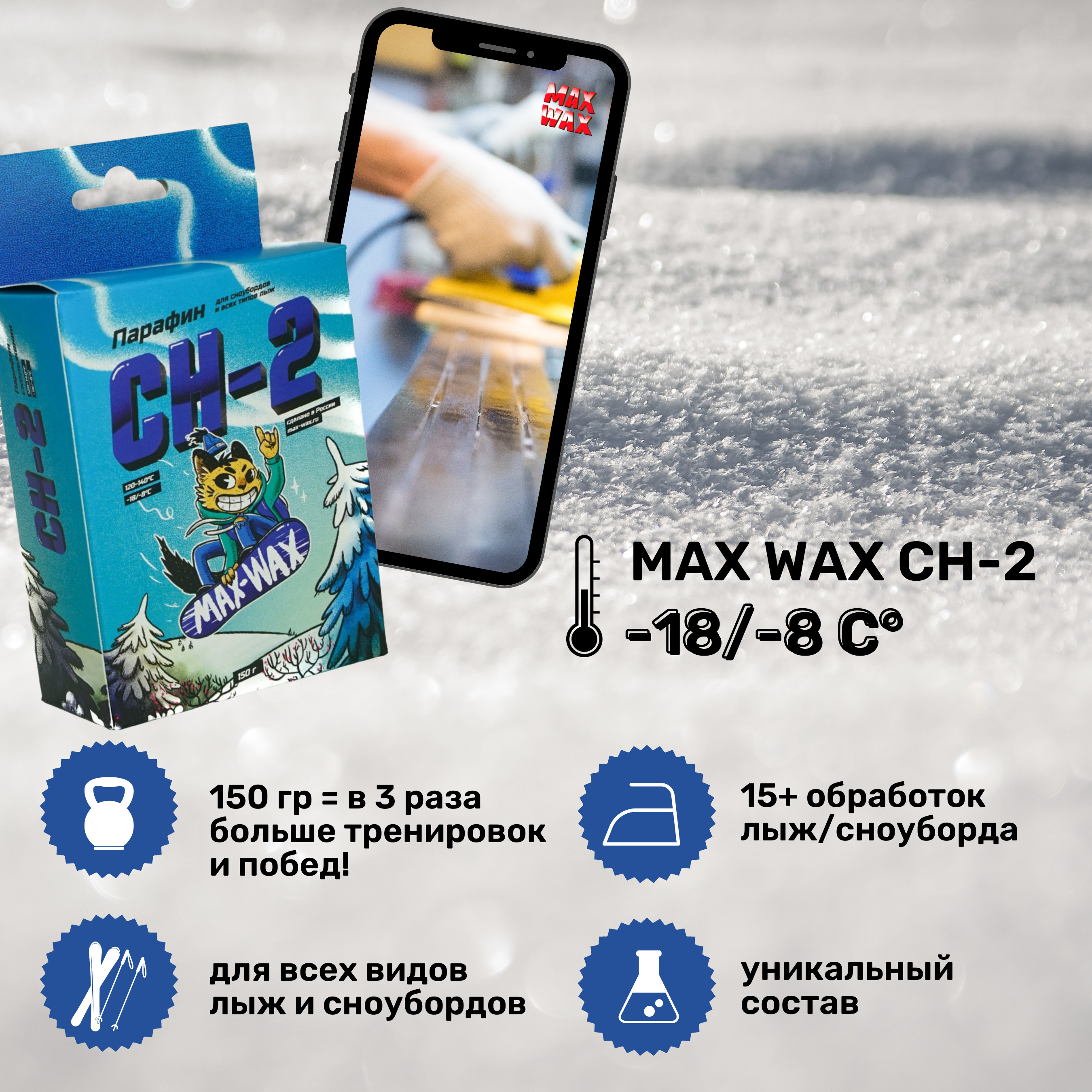 Парафин воск для лыж MAX WAX CH-2 на погоду -18/-8, 150 грамм