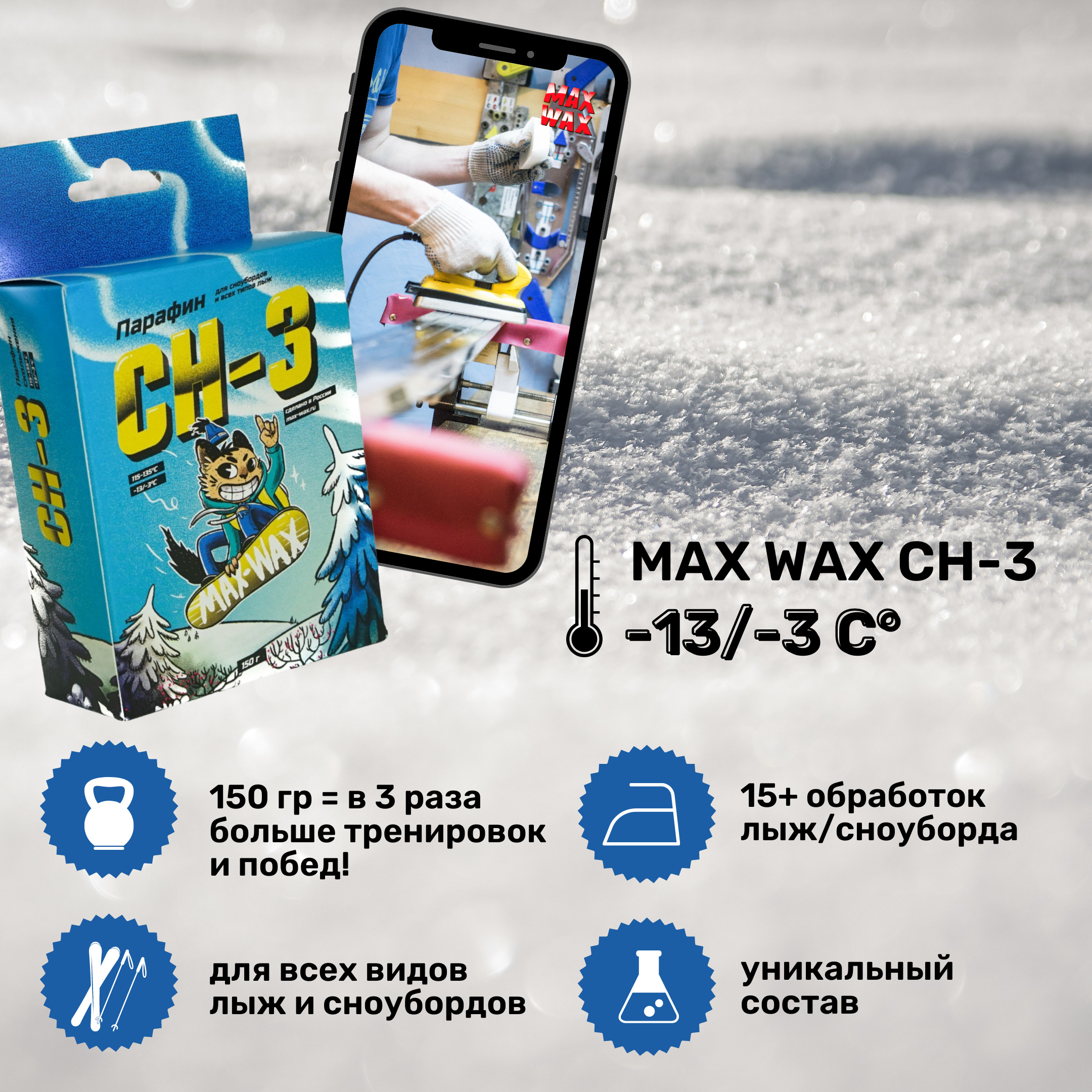 Парафин воск для лыж MAX WAX CH-3 на погоду -13/-3, 150 грамм