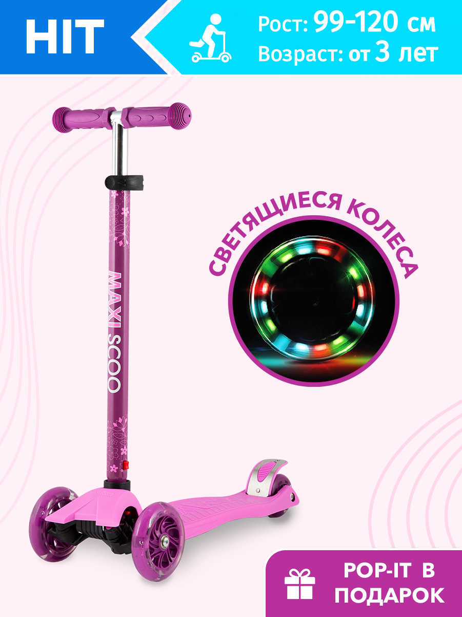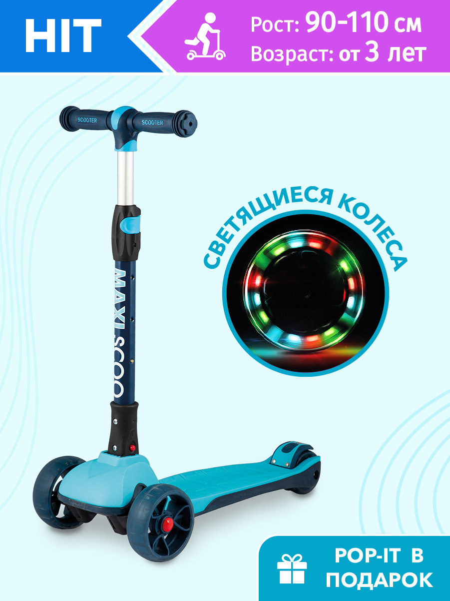 Самокат Городской MAXISCOO Трехколесный Junior (2021) со Светящимися Колесами,