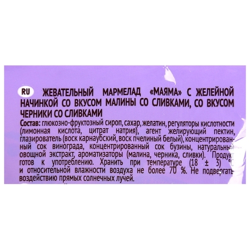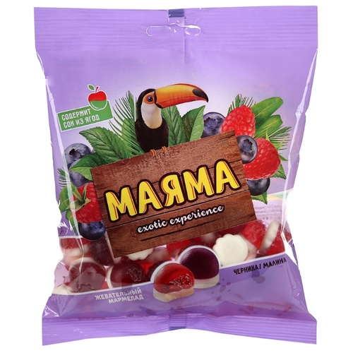 Мармелад Маяма жевательный, с желейной начинкой со вкусом черники и малины со сливками 170 г