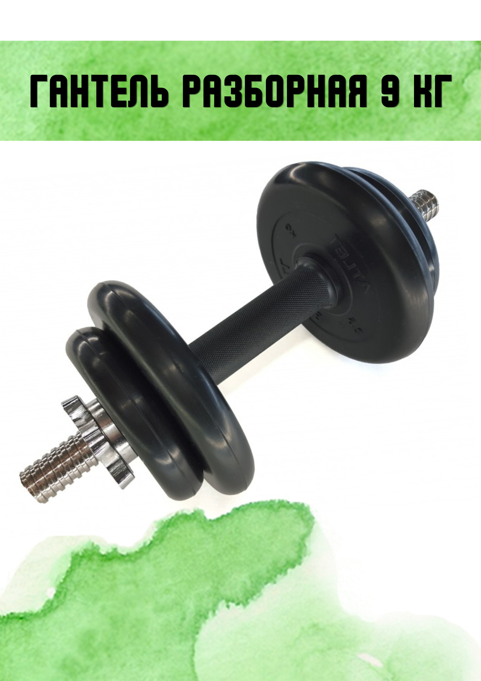 Гантель MB BARBELL Atlet разборная 9 кг, 1 шт. по 9 кг, черный цвет