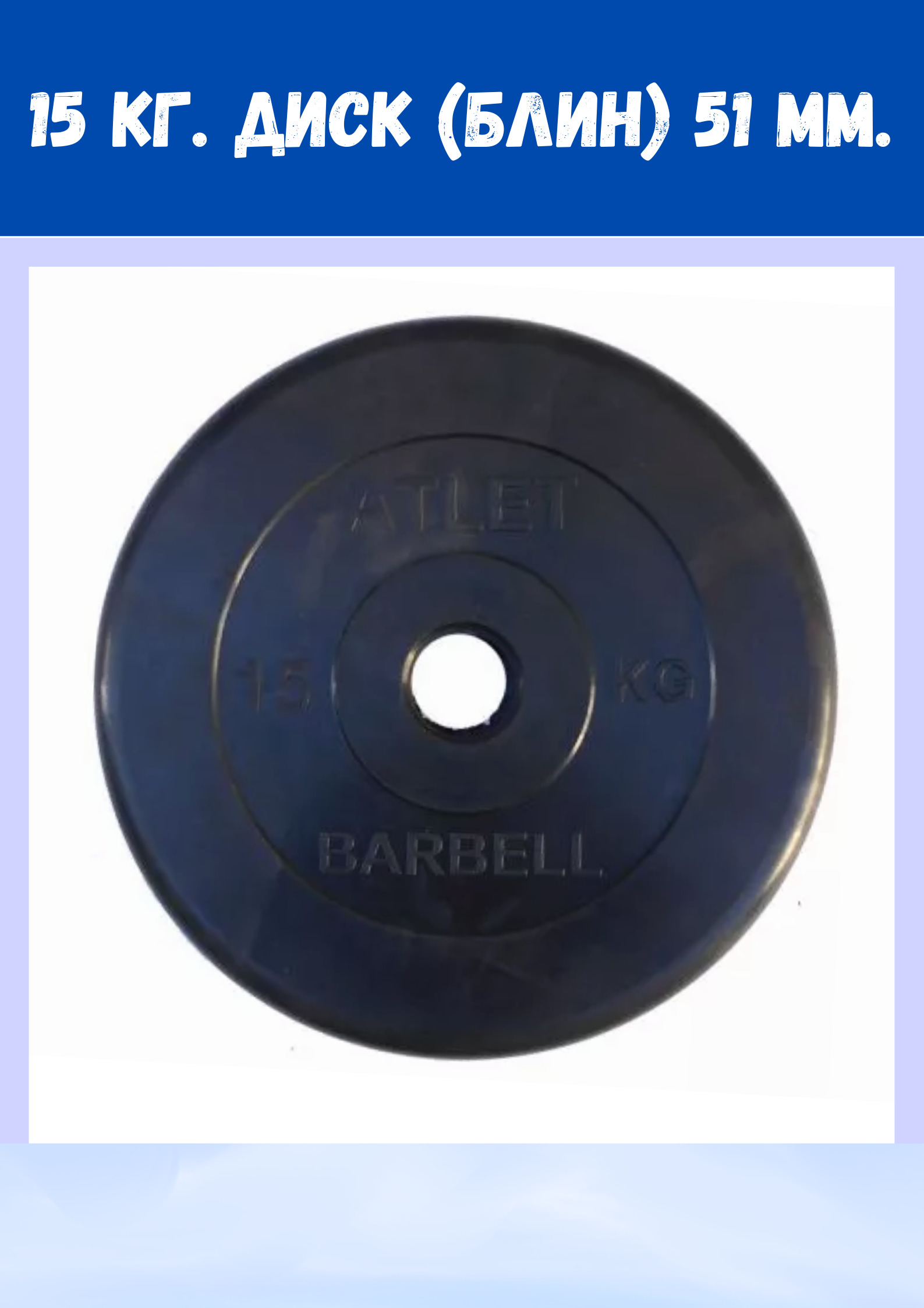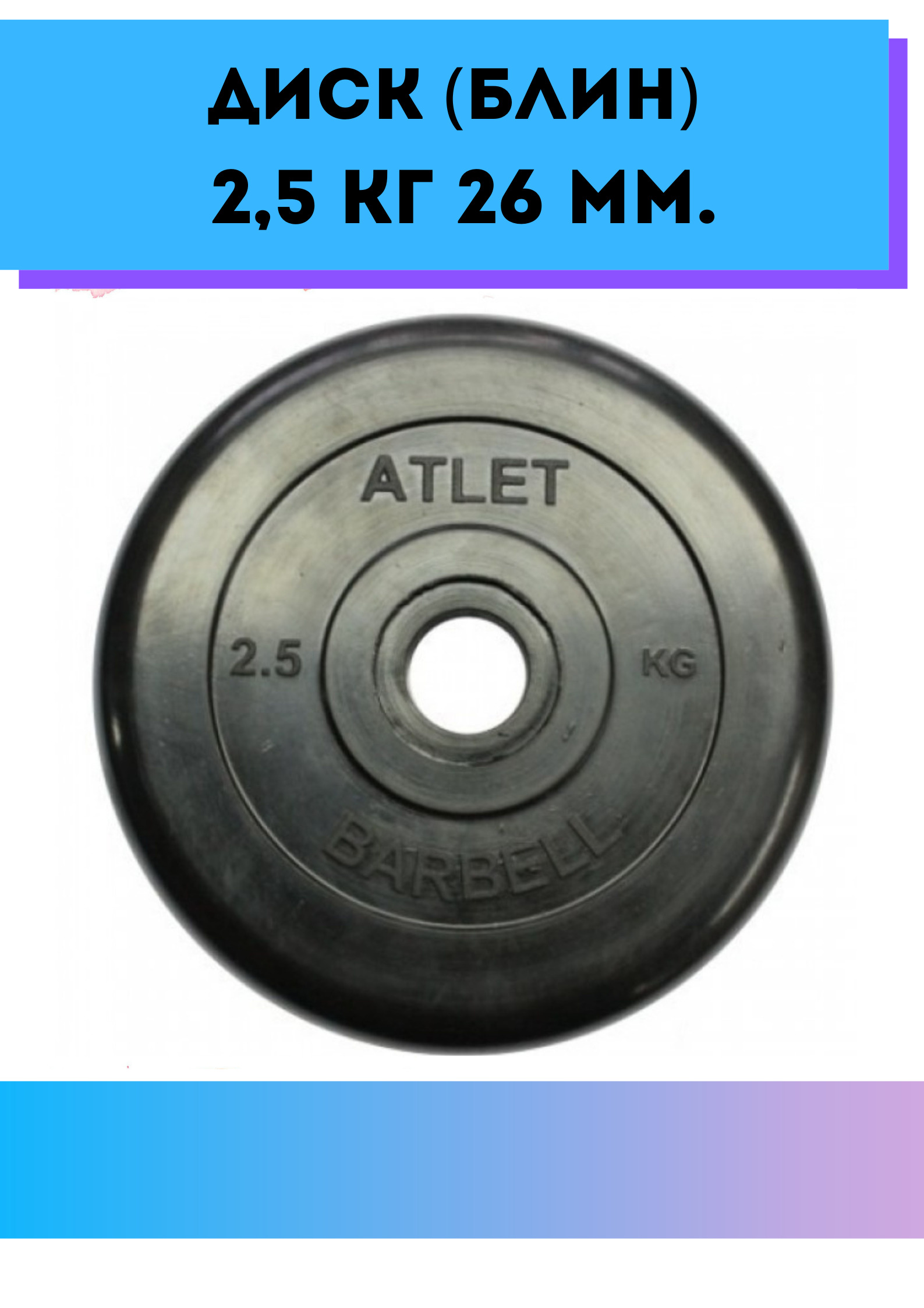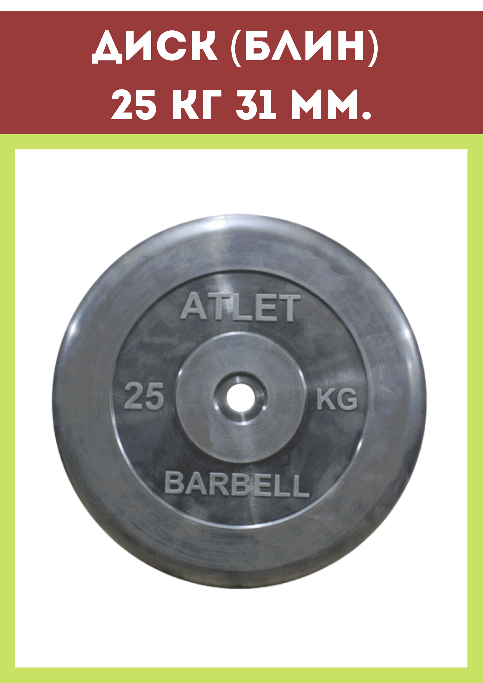 Диск обрезиненный черный Atlet Barbell d-26 25 кг