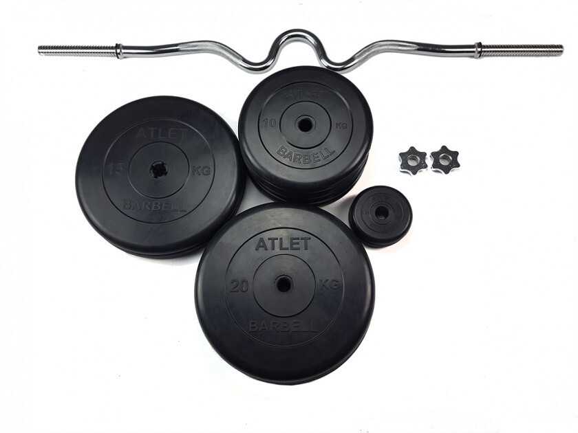 Штанга 120 кг MB Barbell Atlet, прямой гриф 180см, обрезиненные диски (блины)