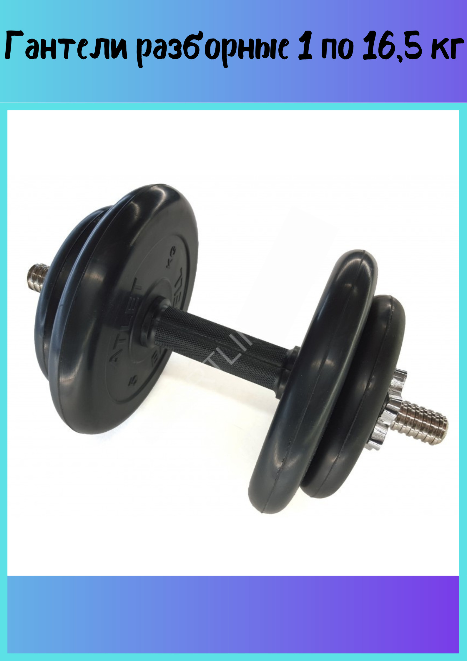 Гантель MB BARBELL Atlet Гантели разборные 1 по 16.5 кг, 1 шт. по 16,5 кг, черный цвет