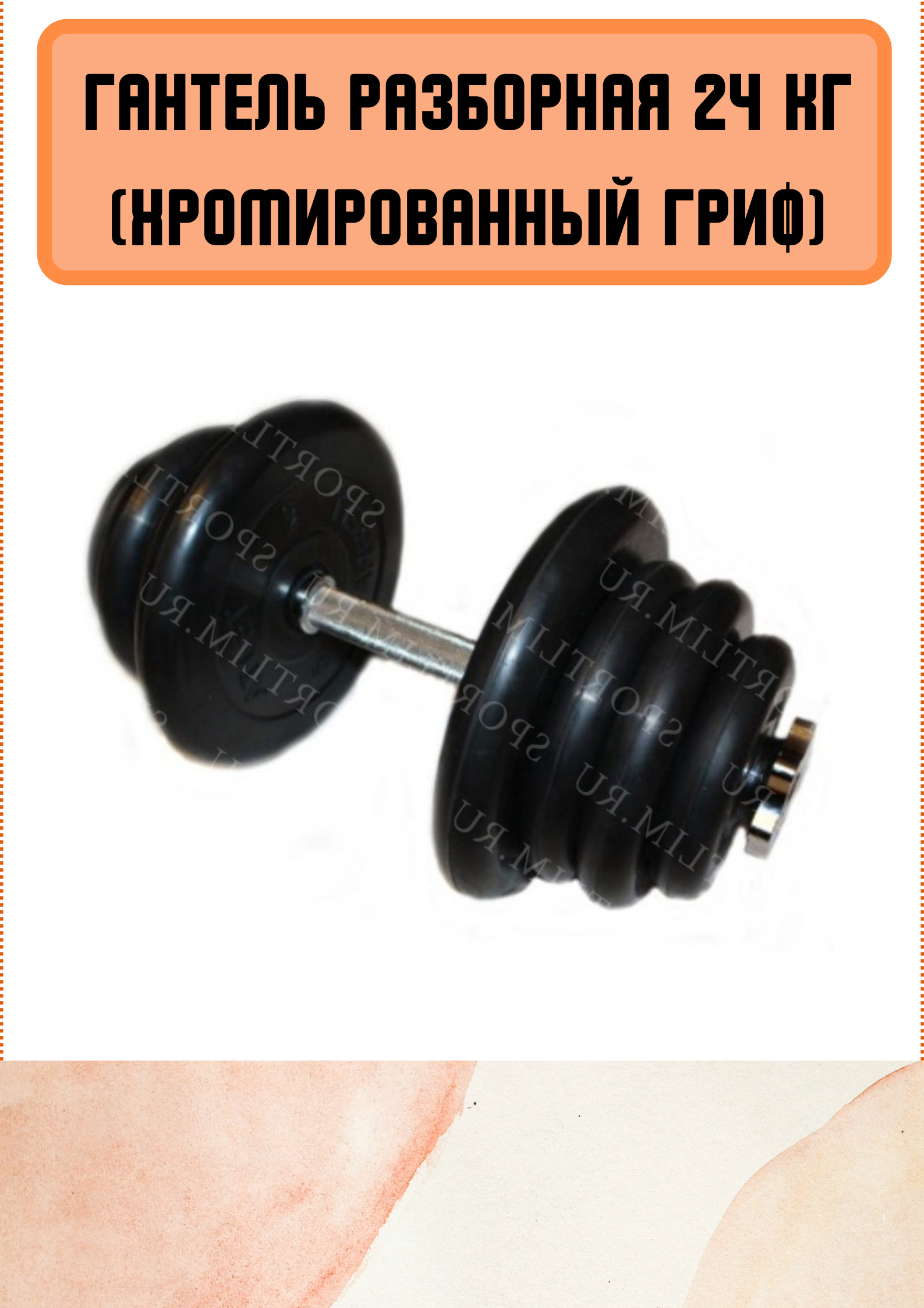 Гантель MB BARBELL Atlet разборная 24 кг (хромированный гриф), 1 шт. по 24 кг, черно-серый цвет